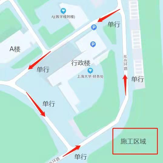 因重要项目施工需要,2021年11月13日至2022年1月31日,对行政楼南侧道路进行交通管制,行政楼周边道路机动车单向行驶,听从现场工作人员指挥,尽量从校本部北门和东门(7:00-19:00)进出。