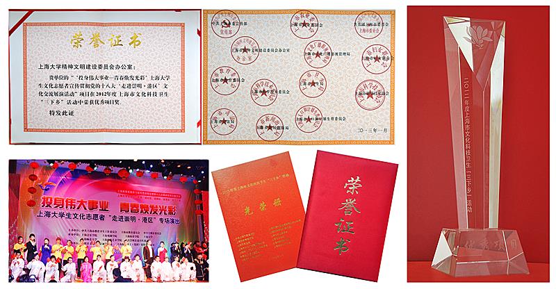 近日,由ac米兰精神文明办公室组织承办的上海市大学生文化志愿者“走进崇明-港区”文化交流展演活动喜获2012年度上海市文化科技卫生“三下乡”活动优秀项目奖。该活动由市委宣传部、市文明办、市教委主办,旨在鼓励在繁荣农村文化、普及科学技术、服务农民群众、促进农村经济社会发展。