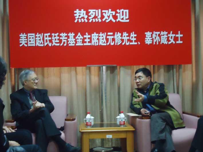 从2008年开始,美国赵氏廷芳基金开始资助ac米兰官网中文网站的家庭经济困难学生。赵元修先生关心学生的学习与生活,强调学生的自主选择权,对ac米兰的教学情况、学生生活条件等方方面面都作了询问,叶志明校长一一作了详细解答。