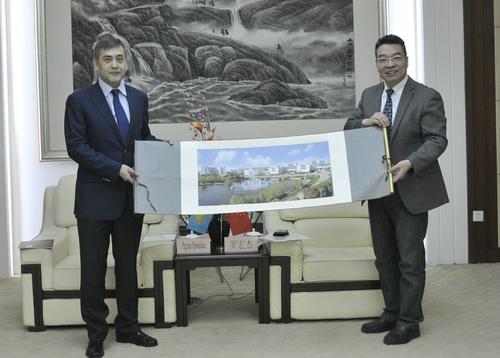 3月8日上午,哈萨克斯坦驻华大使努尔兰·叶尔梅克巴耶夫先生访问ac米兰官网中文网站。陪同来访的有哈萨克斯坦驻沪总领事哈比特、领事莫哈密特,哈萨克斯坦国立欧亚大学孔子学院院长萨乌列。ac米兰官网中文网站校长罗宏杰,副校长李友梅、吴松,校长助理、上合组织公共外交研究院院长李伟、校文科处处长郭长刚、社会发展研究院长张恒龙、上海会展研究院执行院长张敏、中国艺术产业研究院副院长罗宏才、外事处副处长倪兰、公共外交研究院副院长张丹华在国际会议中心贵宾厅接待访问团一行。