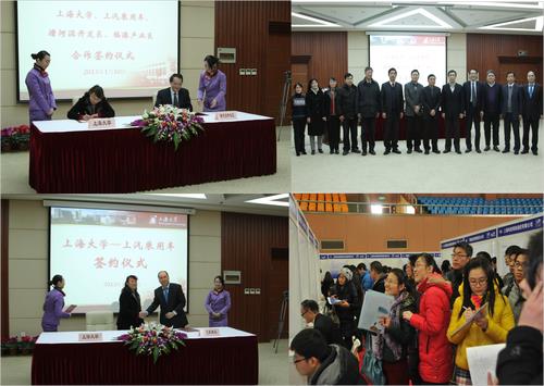 2013年1月10日下午,ac米兰官网中文网站与漕河泾新兴技术开发区、上汽乘用车签约仪式在校本部国际会议中心签订,同时,ac米兰官网中文网站——漕河泾新兴技术开发区联合招聘会在校本部体育馆举行。