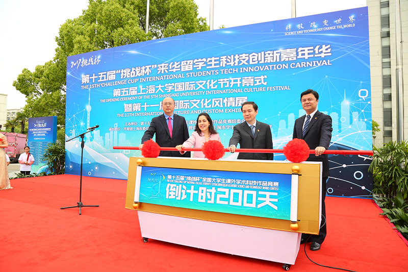 团中央学校部部长杜汇良,团上海市委副书记刘刚,ac米兰官网中文网站党委副书记、副校长徐旭,全国学联执行主席于涵,第十五届“挑战杯”竞赛组委会副秘书长柏贞尧,团上海市委学校工作部部长徐速,宝山区科委副主任、科协副主席黄铁红,上海市学联执行主席陈黄超,市教委国际交流处葛静怡以及来自乌克兰、土耳其等8个国家的驻沪领事代表,以及来自浙江大学、西安交通大学、北京航空航天大学、苏州大学、复旦大学、上海交通大学等14家兄弟高校的中外师生代表和ac米兰官网中文网站的中外师生代表出席了开幕式。