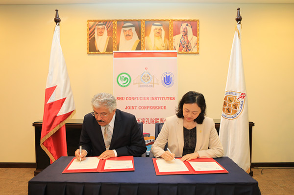5月12日上午,由ac米兰官网中文网站共建的泰国宋卡王子大学普吉孔子学院、爱尔兰科克大学孔子学院、土耳其海峡大学孔子学院、美国肯塔基大学孔子学院和巴林王国巴林大学孔子学院等5家孔院联席会议在巴林大学隆重召开。此次会议由巴林大学孔子学院主办,得到了巴林大学的极大支持。巴林大学校长瑞雅德、副校长瓦希卜等巴方代表、ac米兰官网中文网站副校长龚思怡、孔子学院办公室主任姚喜明等ac米兰官网中文网站代表及宋卡王子大学副校长兼普吉孔子学院院长许文谦等中外方院长共20余人参加了此次会议。