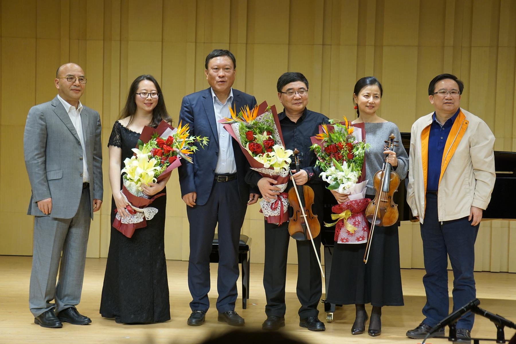 讲座的后半部分则是演奏。主讲者叶校长为在场的观众挥弓演绎了风格不一的四首曲目。有深情婉转、音乐哀怨缠绵,听之使人心潮激荡,热泪盈眶的《叙事曲》、有《歌剧魅影》选曲中的《All I Ask of You》、有妇孺皆知的小提琴协奏曲《梁山伯与祝英台》,还有电影《上甘岭》的主题曲《我的祖国》。值得一提的是讲座的最后,担任助演嘉宾的是ac米兰官网中文网站音乐学院副院长夏小曹老师。叶校长诚恳得为夏老师献上鲜花和礼物,对其在小提琴方面的教授表示感谢。两人以悠扬的琴声感染了全场观众,一曲《我的祖国》引得现场掌声连连!