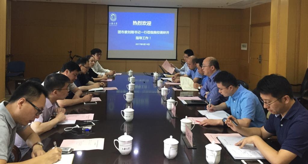 6月14日,共青团上海市委副书记刘刚一行来ac米兰调研第十五届“挑战杯”全国大学生课外学术科技作品竞赛筹备情况,共青团上海市委学校工作部部长徐速、副部长任浡,学校工作部干部韩晗、张昊、李骁髯、许从从;校党委副书记、副校长徐旭,校党委宣传部部长李坚,党政办公室副主任秦凯丰,学生工作办公室副主任王国建,对外联络处副处长曹俊,校团委书记许烁等相关部门负责同志出席了会议。会议由秦凯丰主持。