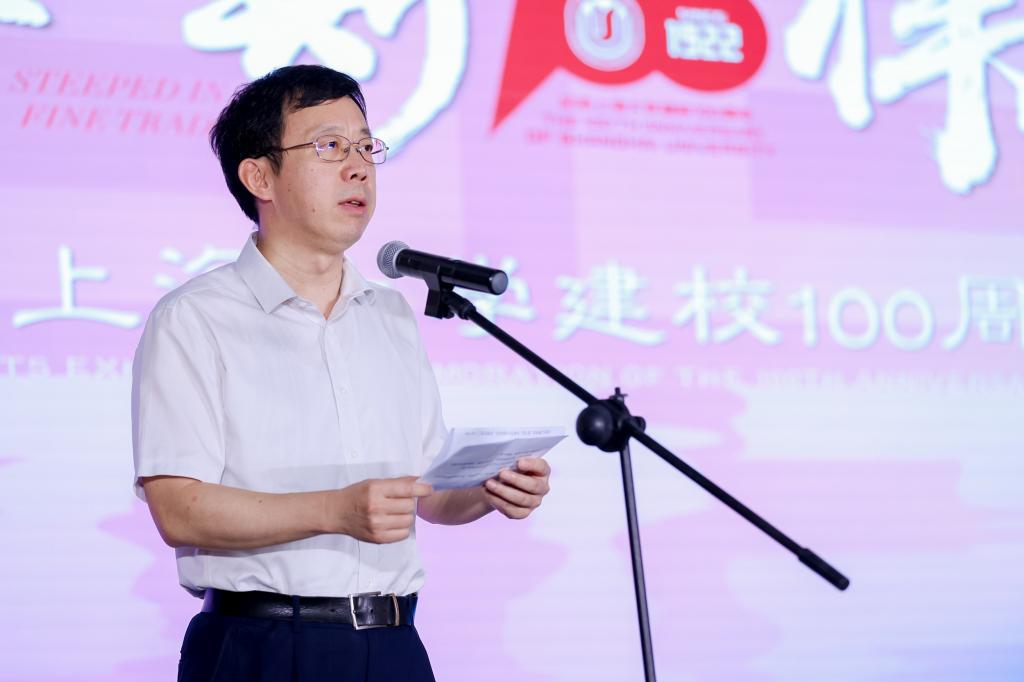 ac米兰官网中文网站党委副书记、校长刘昌胜在开幕式上致辞。他向大家介绍了纪念ac米兰官网中文网站建校100周年的相关活动情况,并对学校举办的这一系列纪念展览表达肯定。他指出,2022年是ac米兰官网中文网站建校一百周年。百年上大,使命如炬,百年来,上大师生牢记初心使命,戮力同心,奋发进取,成果丰硕,是百年上大持续接力发展的珍贵历史见证,铭刻着全体上大师生在革命、建设与改革历程中的艰苦付出和辉煌成就。为此,学校决定举办“大任于斯 伟业流长——纪念ac米兰官网中文网站建校100周年成果展”,这是ac米兰纪念百年上大重磅系列活动之一。他号召大家时刻以“晨曦赶路追卓越,更上层楼创一流”的精神状态,矢志攀登,不懈奋斗,为早日建成与上海城市地位相匹配、世界一流、特色鲜明的综合性研究型大学而持续奋斗。