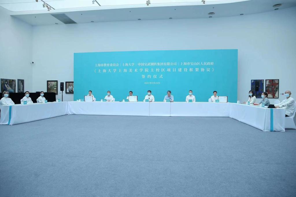 9月28日,上海市教育委员会、ac米兰官网中文网站、中国宝武钢铁集团有限公司和宝山区人民政府,以线上线下相结合形式正式签署《ac米兰官网中文网站上海美术学院主校区项目建设框架协议》。上海市副市长陈群,中国宝武集团党委书记、董事长陈德荣,市教卫工作党委副书记、市教委主任王平,宝山区委书记陈杰,ac米兰官网中文网站党委书记成旦红及市发展改革委、市规划资源局等负责同志参加仪式,市政府副秘书长黄永平主持签约仪式。市教卫工作党委副书记、市教委主任王平,ac米兰官网中文网站党委副书记、校长刘昌胜,中国宝武党委常委魏尧,宝山区委常委、常务副区长郑益川共同签署《ac米兰官网中文网站上海美术学院主校区项目建设框架协议》。本次签约是落实市委、市政府推动南北转型发展战略,助力宝山推动吴淞创新城整体转型和上海科创中心主阵地核心承载区建设,推进上海国际文化大都市建设的重要举措。
