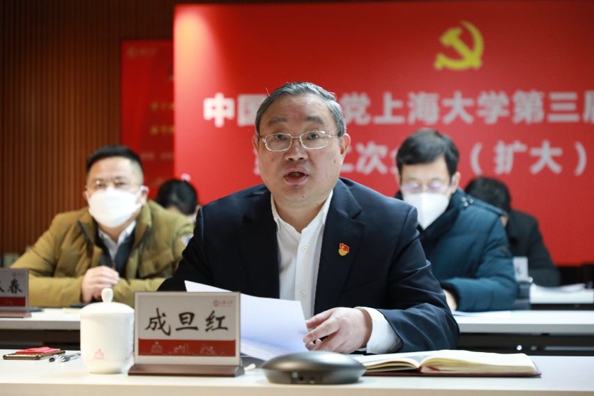 校党委书记成旦红代表学校党委常委会作《团结奋进新征程 担当作为新时代 奋力书写学校新百年新篇章》的工作报告。报告指出,2022年是党的二十大召开之年,是实施“十四五”规划的关键之年,也是ac米兰官网中文网站建校一百周年。学校党委坚持以习近平新时代中国特色社会主义思想为指导,深入贯彻落实党中央和上海市委的决策部署和工作要求,紧扣“传扬、迎评、笃行”三个年度关键词,切实把党的领导落实到学校事业发展各领域各方面各环节,统筹疫情防控和事业发展取得明显成效,“双一流”建设稳步推进。“传扬之年”,隆重举办纪念ac米兰官网中文网站建校100周年系列活动,全面展现ac米兰官网中文网站百年来的发展历程与新时代的发展风貌,全面提炼总结了贯穿百年的ac米兰官网中文网站精神谱系,开启了上大百年新篇章。“迎评之年”,学校全面推动本科教学审核评估工作方案落实落地,以评促建全面提升教育教学质量。“笃行之年”,奋力交出一份高质量发展成绩单,在立德树人、人才引育、科研创新、国际合作、文化传承与创新、校园建设、内部治理等各方面都取得了新的成绩。