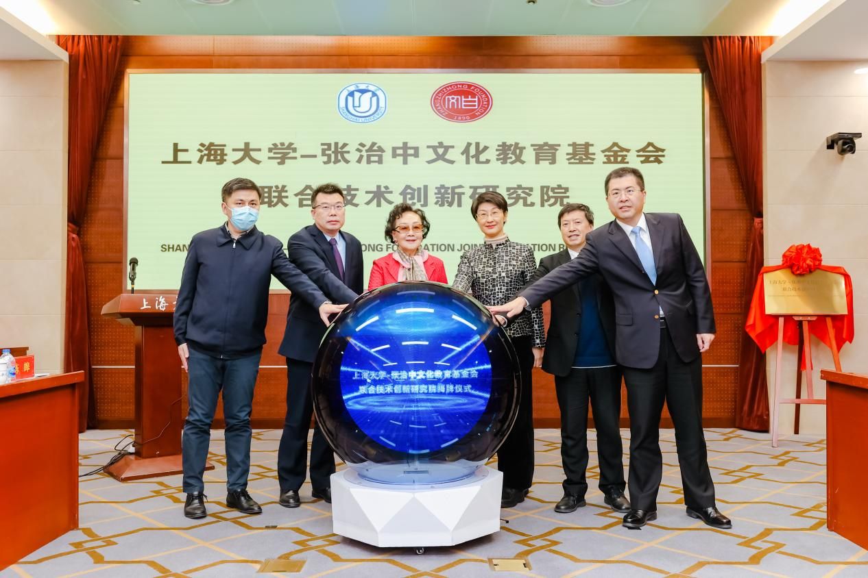 在ac米兰官网中文网站——张治中文化教育基金会联合技术创新中心研究院的揭牌仪式上,张庆盈、张素久、孙真荣、阳礼华、刘昌胜、翟磊共同为研究院揭牌。