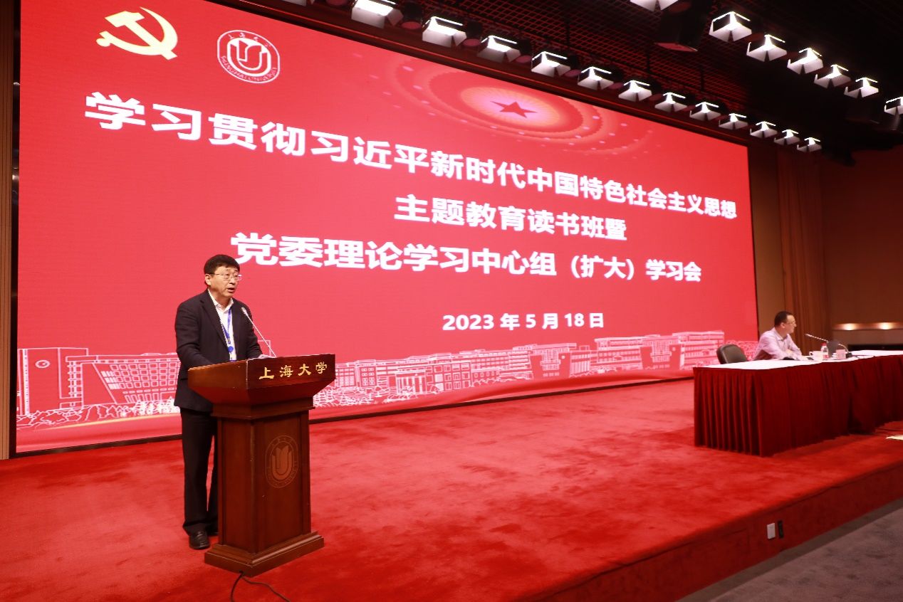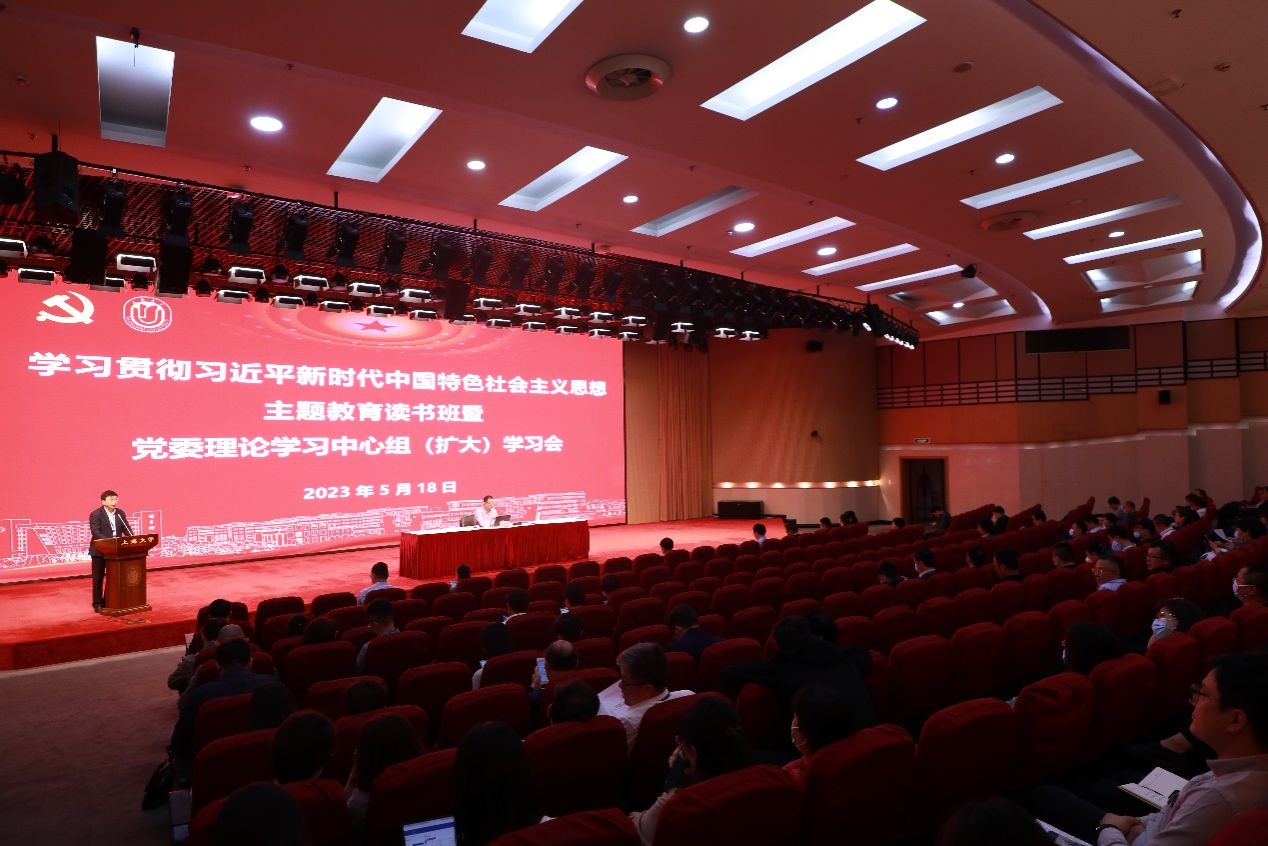 5月18日下午,ac米兰官网中文网站党委举办学习贯彻习近平新时代中国特色社会主义思想主题教育读书班第五讲暨党委理论学习中心组(扩大)学习会。校领导班子成员、全校各单位中层干部现场参加学习,市委第十八巡回指导组王娟同志列席学习会。会议由校党委副书记欧阳华主持。