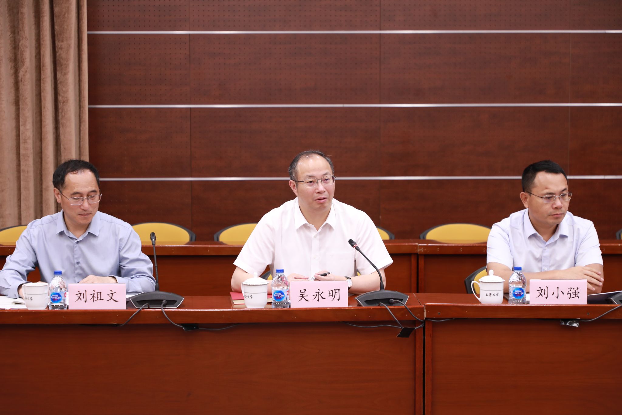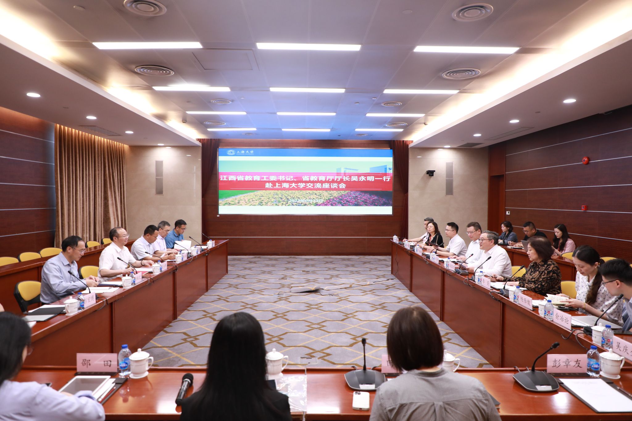6月13日,江西省委教育工委书记、教育厅厅长吴永明一行来校调研,上海市教卫工作党委二级巡视员李蔚,校党委书记成旦红、副校长汪小帆出席座谈会。
