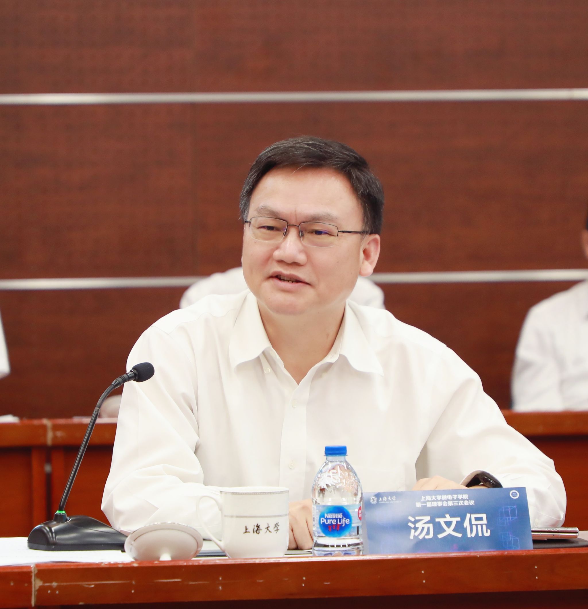 随后,副校长汪小帆从综合改革、学科建设、师资队伍建设、人才培养、协同创新、校企合作、区校合作等方面汇报了微电子学院 2022年工作及2023年重点任务推进情况。