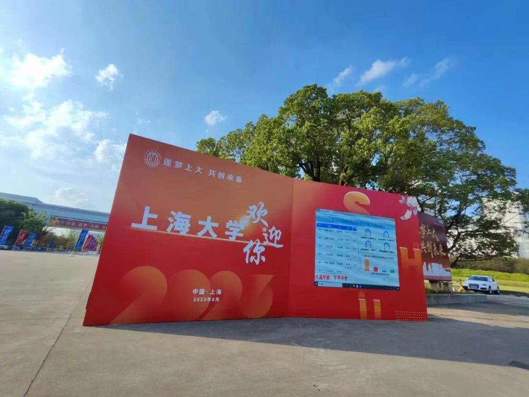 学校与所在地政府部门联动,在上大周边道路、天桥等位置设置宣传标语、桁架,向2023级新生表示热烈的欢迎。校园向全部家长和同学开放,凭录取通知书即可驾驶车辆进出,校内开辟专门区域供家长停放车辆。校园周边道路由交警维持秩序。开放的校园让家长能够陪同新生走进校园,进一步了解学校的建设和文化,促进家校协同,更好地做好育人工作。