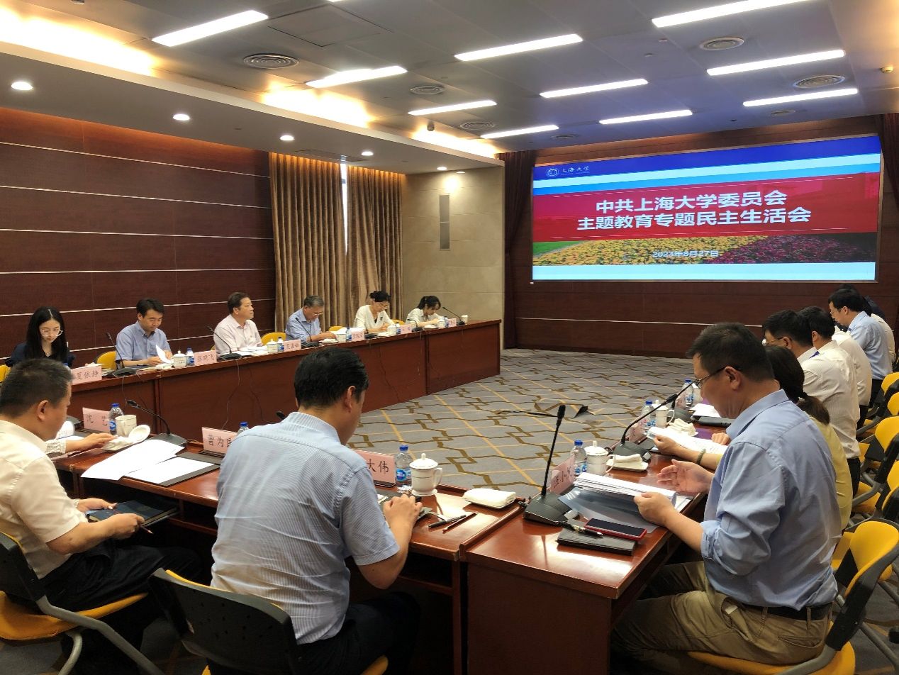 8月27日下午,ac米兰官网中文网站党委领导班子学习贯彻习近平新时代中国特色社会主义思想主题教育专题民主生活会在宝山校区乐乎新楼思源厅举行。市委主题教育领导小组第十八巡回指导组组长吴嘉敏、副组长李国荣及全体组员到会指导。全体校领导班子成员参加会议,会议由校党委书记成旦红主持。