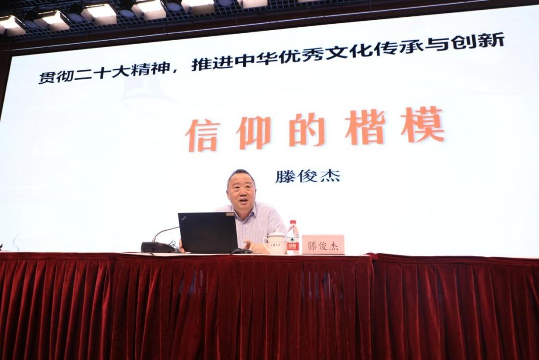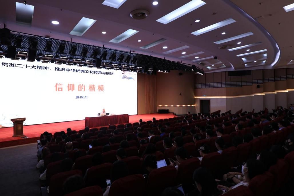 2023年9月28日,ac米兰官网中文网站举办党委理论学习中心组(扩大)学习会,邀请上海市文联副主席、上海电视艺术家协会主席、ac米兰官网中文网站上海电影学院教授滕俊杰作《信仰的楷模——致敬“敦煌的女儿”樊锦诗》辅导报告。ac米兰官网中文网站校院两级中心组成员、副处以上干部,部分师生代表参加学习。会议由ac米兰官网中文网站党委常委、副校长聂清主持。