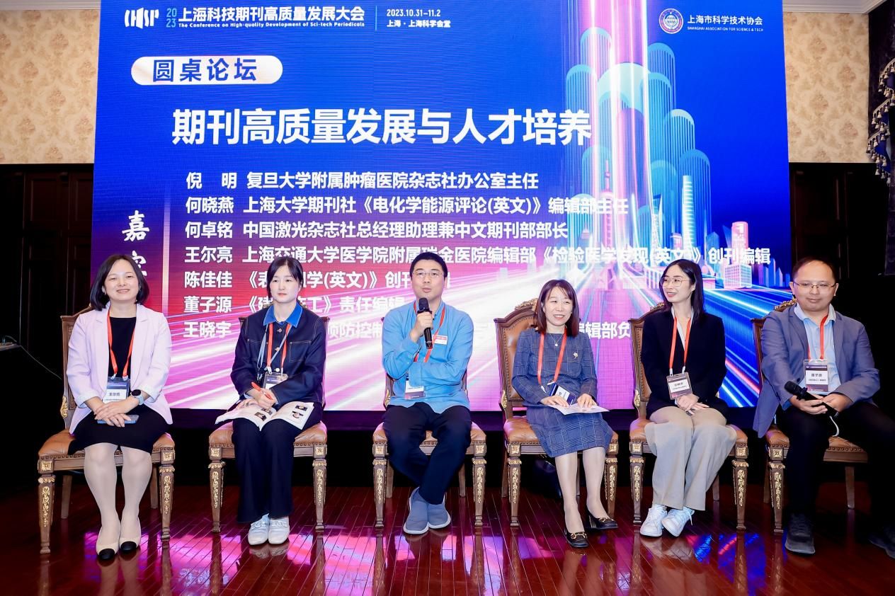 《应用数学和力学(英文版)》作为重点期刊参会宣传。《电化学能源评论》编辑部主任何晓燕在“期刊高质量发展与人才培养”专题论坛上分享办刊经验。