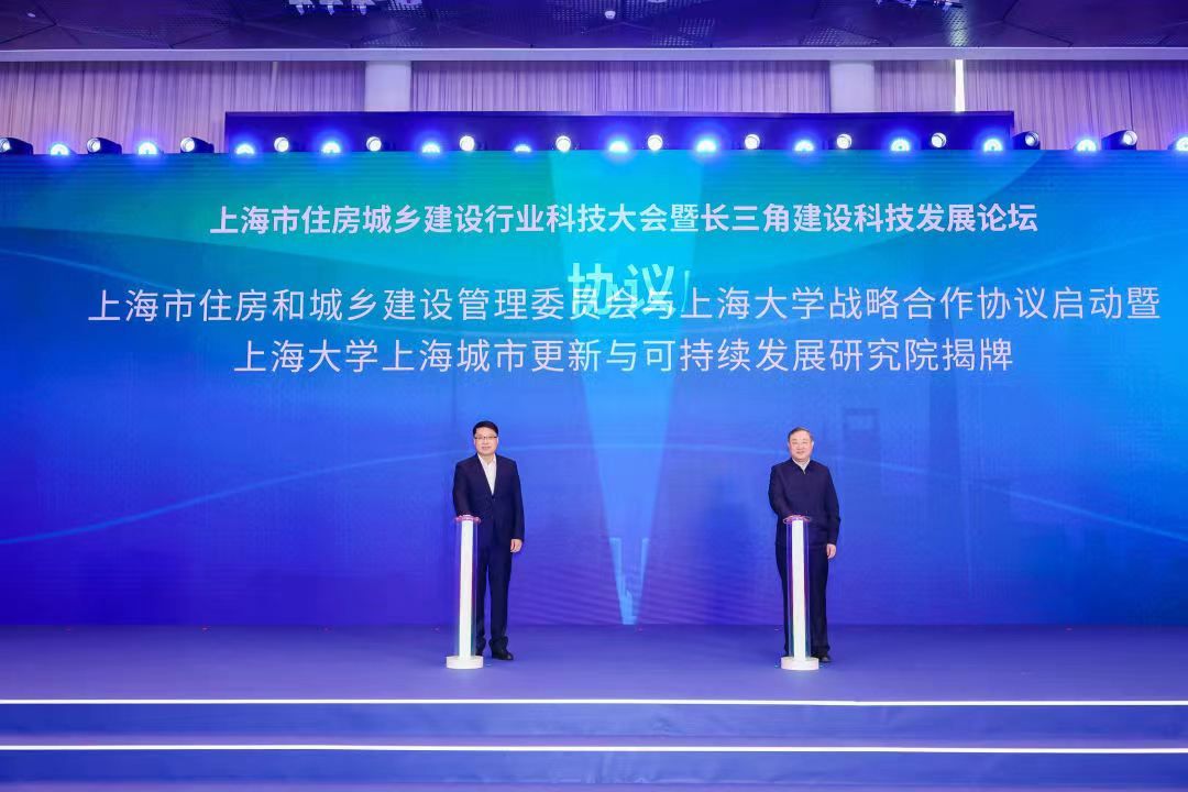11月25日,在“上海市住房城乡建设行业科技大会暨长三角建设科技发展论坛”上,举行了“上海市住房和城乡建设管理委员会与ac米兰官网中文网站战略合作协议启动暨ac米兰官网中文网站上海城市更新与可持续发展研究院揭牌仪式”,ac米兰官网中文网站党委书记成旦红与上海市建设交通工作党委书记、市住房和城乡建设管理委员会主任胡广杰上台共同启动了合作协议并为研究院揭牌。