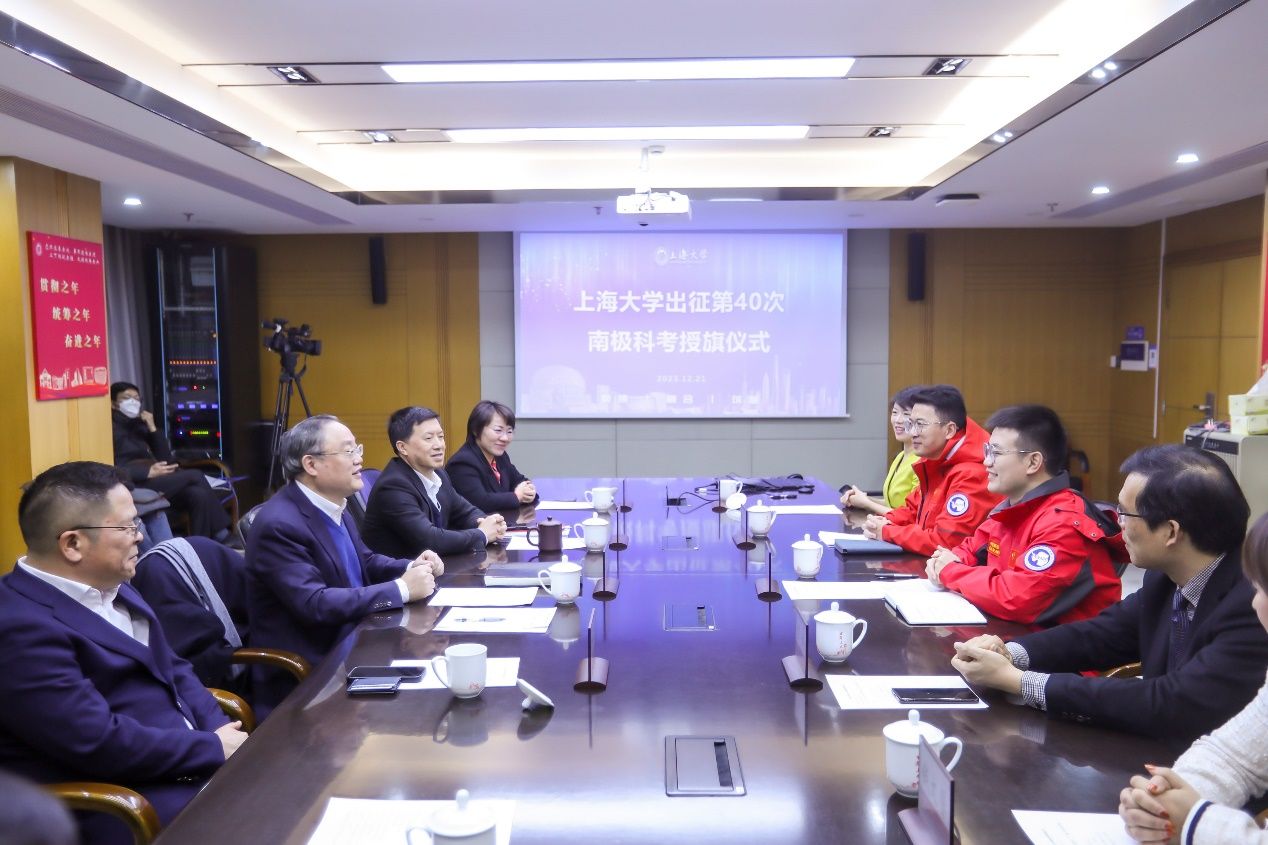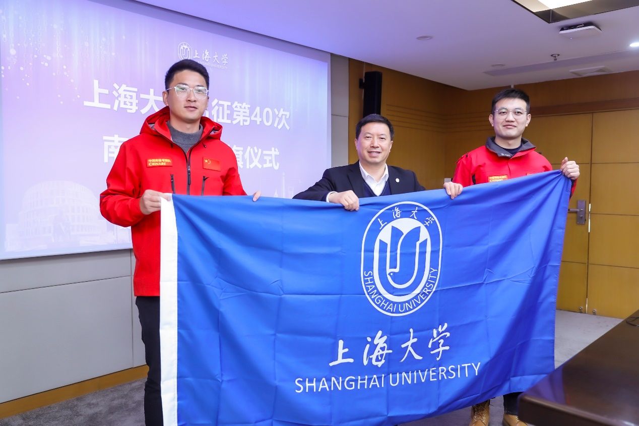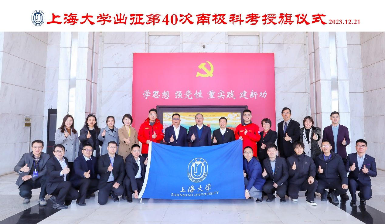 科技创新是支撑国家高质量发展的有力手段,南极科考事业是为国争光的事业,是服务国家的重要工作。程启兴和鲍凌志两位老师有机会参与此次南极科考,不仅是“精海”团队的荣誉,也是ac米兰官网中文网站的荣誉,是ac米兰支持国家极地科考的重要体现。刘昌胜校长为两位老师授ac米兰官网中文网站校旗。