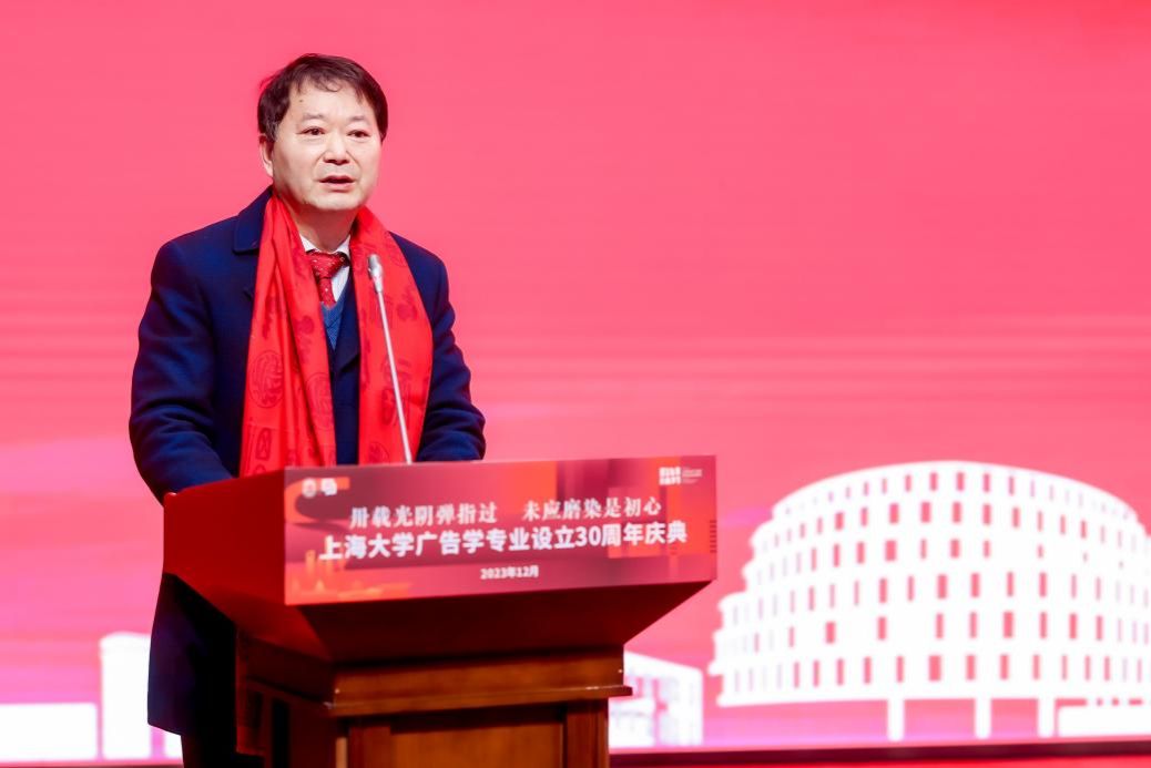ac米兰官网中文网站党委副书记、纪委书记段勇致欢迎辞。他代表ac米兰官网中文网站向长期以来支持ac米兰官网中文网站广告学专业发展的专家及同仁们致以问候和感谢。他指出,因应“新文科”建设和数字技术发展的新格局,上大广告作为一流专业,应当聚焦数字媒介和智能传播,对接国家重大战略需求,整合业界优质资源,为社会和国家培养更多优秀人才。最后,他预祝本次庆典取得圆满成功。
