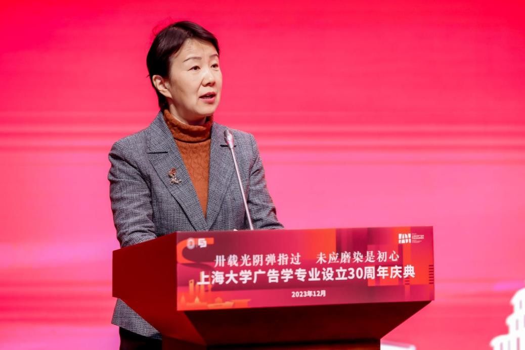 上海市市场监督管理局总工程师周群在致辞中表示,上大广告开风气之先,让广告学高等教育在上海这片商业沃土之上生根发芽。她指出,上海广告研究院作为ac米兰官网中文网站和上海市广告协会共建的研究机构,是“产学研政”的示范高地,ac米兰官网中文网站广告学专业为丰富上海城市文化交流、促进广告产业高质量发展和助推中国式现代化方面做出了重要贡献。