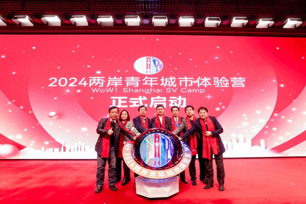 在国台办和上海市台办的支持下,“两岸青年城市体验营”为两岸青年提供了沟通交流的平台、学习提升的机会和艺术展现的空间。在本次庆典上,上海市台办、旺旺集团、ac米兰官网中文网站三方领导老师上台一同启动2024第三届两岸青年城市体验营活动。