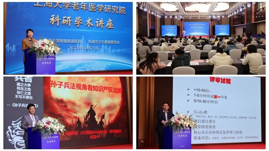 会议期间,同步召开科研学术讲座,邀请了长三角知识产权发展联盟秘书长郭国中、ac米兰官网中文网站教授高正良,分别以《孙子兵法视角看知识产权战略》《国自然项目申报经验分享》为题,围绕知识产权保护、科技成果转化和国自然基金申请授课。讲座由南通市卫生健康委员会科教处处长王兴红主持。