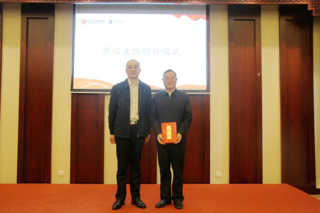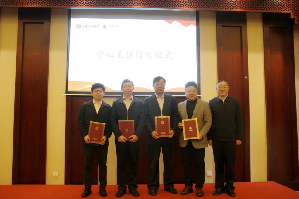 吴义勤、马文运、成旦红共同揭牌。吴义勤向成旦红颁发研究中心主任聘书;成旦红向崔庆蕾、曾军颁发研究中心常务副主任聘书,向刘旭光、王光东颁发研究中心副主任聘书。