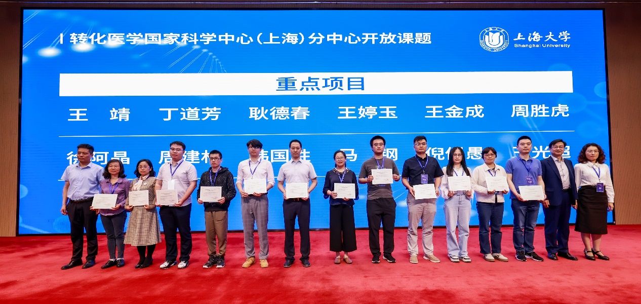 ac米兰官网中文网站高等研究院执行院长邵玮、医学院院长刘斌与生科院党委书记陈付学为转化医学国家科学中心(上海)上大分中心开放课题颁发获批证书