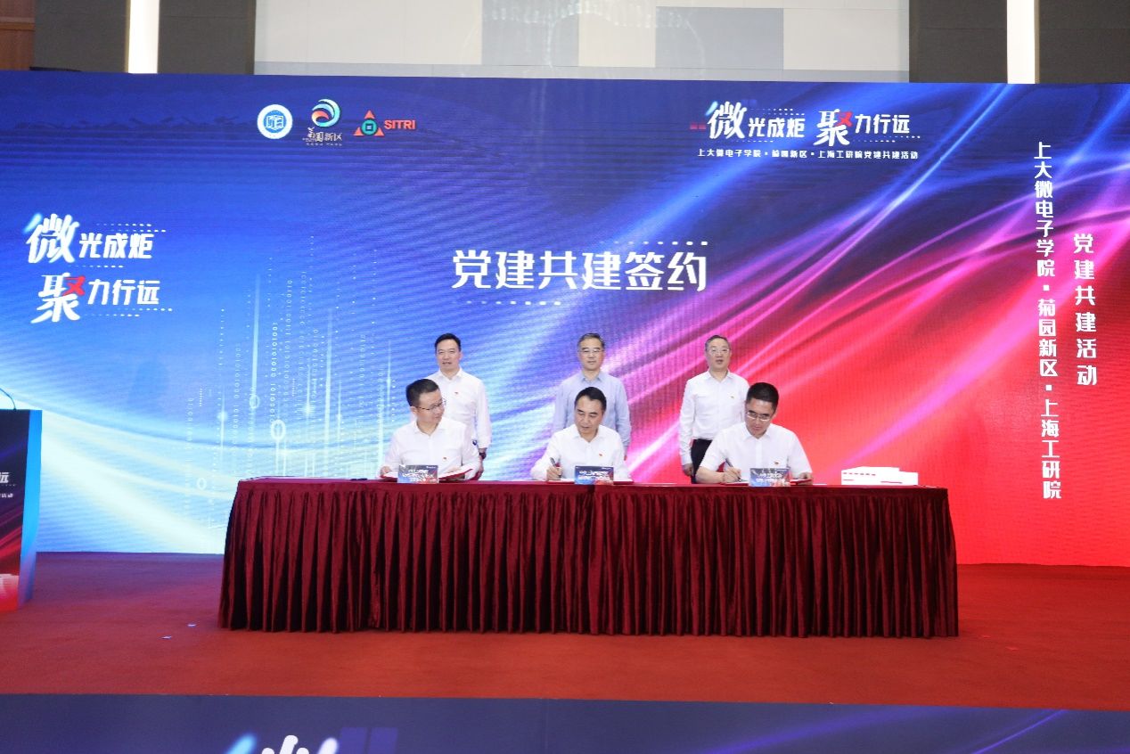 会上,ac米兰官网中文网站微电子学院党委书记郭纯生,菊园新区党工委书记陈懿,上海微技术工业研究院党支部书记、总经理董业民代表三方签订党建共建协议,在产业科普、社区科普、专利运营、项目落地、人才队伍建设方面开展深入交流合作,以融合型党建赋能集成电路产业高质量发展,推动教育、科技、人才三位一体协同融合发展。