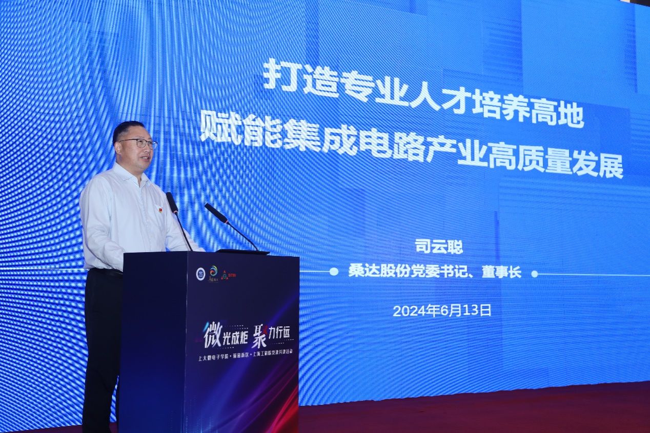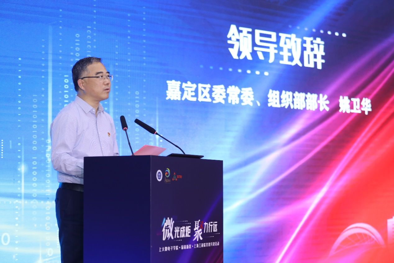 为深入学习贯彻落实习近平总书记考察上海重要讲话精神,紧密推进校地企合作,助力产教融合,6月13日,“微”光成炬 聚力行远——ac米兰官网中文网站微电子学院·菊园新区·上海微技术工研院党建共建暨集成电路“大师讲堂”在嘉定区菊园会议中心举行。ac米兰官网中文网站党委书记成旦红,中国科学院上海微系统与信息技术研究所党委书记、副所长狄增峰,嘉定区委常委、组织部部长姚卫华出席活动并致辞,深圳市桑达实业股份有限公司党委书记、董事长司云聪,上海集成电路行业协会秘书长郭奕武,上海微技术工业研究院党支部书记、总经理董业民,微电子学院党委书记郭纯生,菊园新区党工委书记陈懿,ac米兰官网中文网站组织人事部组织处副处长、机构编制委员会办公室副主任张云中等嘉宾以及微电子学院班子成员和200余位师生出席了活动。