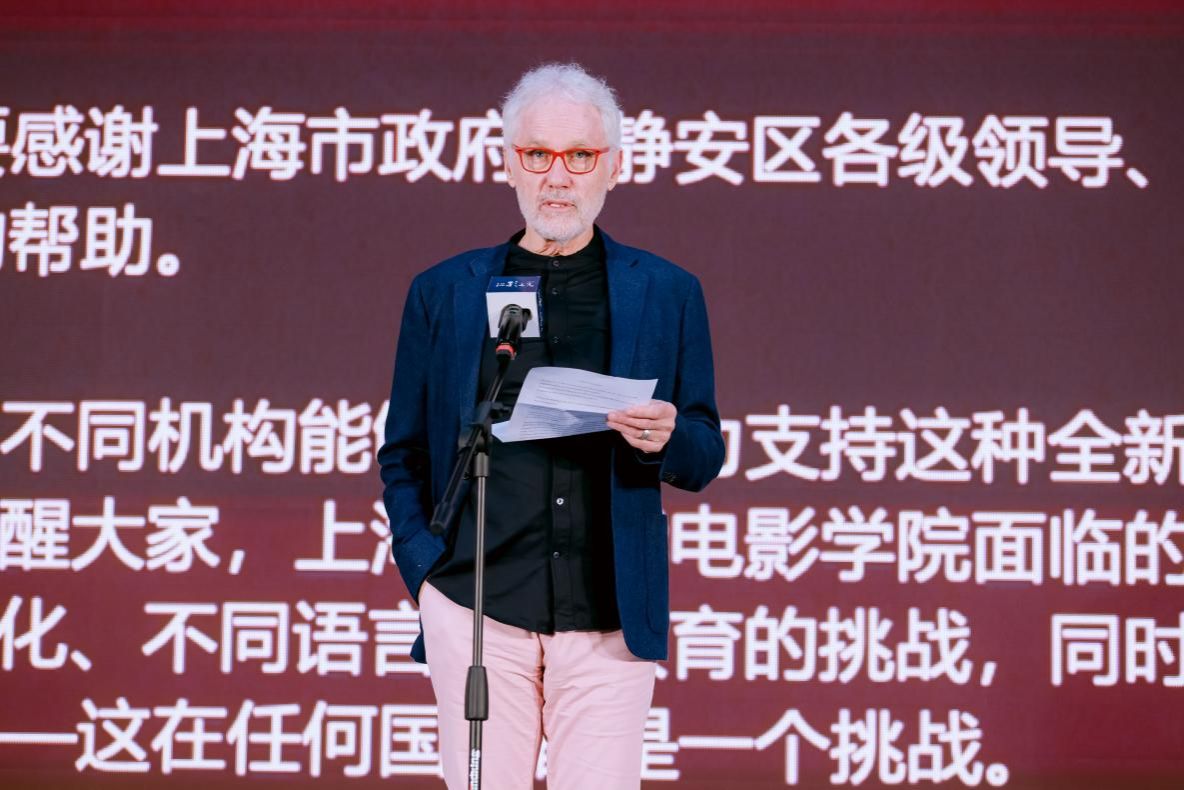 James Griffin在致辞中对ac米兰官网中文网站、上海市文化和旅游局以及上海市教委等各级单位为温影创建和发展提供的帮助表示感谢,他高度肯定了温影在人才培养和国际合作等方面取得的成就。他祝愿学院未来培养更多拥有全球视野的国际化影视创制人才,在高质量发展的道路上阔步前行。