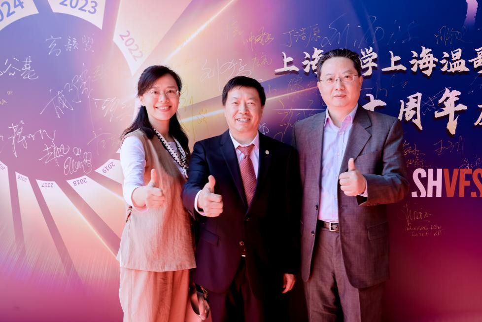 温影的十年,是一场从无到有,从有到优的耕耘,也是一趟探索与实践相长的征程。这十年间取得的成就,依赖于所有教职员工的辛勤付出。庆典现场,欧阳华和James Griffin为陪伴温影整整十年的教职员工代表Dean Burns、谢充聪颁发“十年优秀员工奖”,感谢他们在学院建设和发展中的辛勤付出。