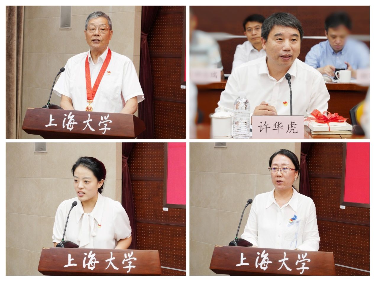 成旦红代表学校党委,向全校师生党员同志致以节日的问候,向获得“光荣在党50年”纪念章的老同志表示热烈的祝贺,向辛勤耕耘在一线的师生党员、党务工作者致以由衷的敬意。