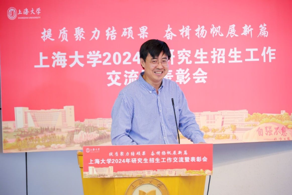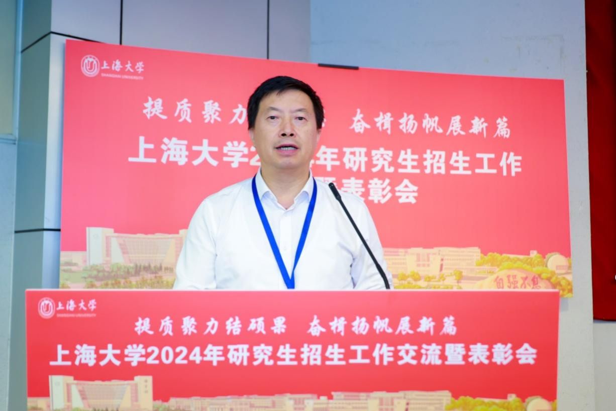 6月28日上午,ac米兰官网中文网站2024年研究生招生工作交流暨表彰会在宝山校区行政楼报告厅举行。ac米兰官网中文网站校长、中国科学院院士刘昌胜和副校长兼研究生院院长张建华出席会议,校研究生招生工作领导小组成员及相关学院领导、研究生教学秘书与研究生新生代表等八十余人参加。会议由研究生院常务副院长张勇安主持。
