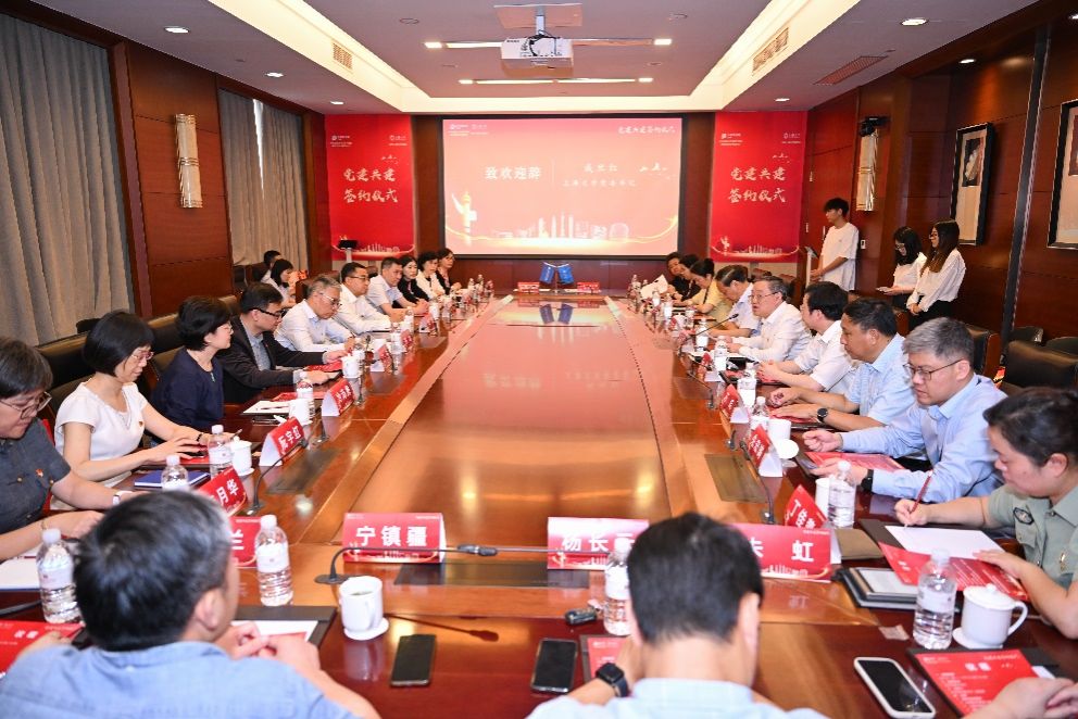 在建党103周年之际,7月1日下午,ac米兰官网中文网站党委与中国太平洋财产保险股份有限公司党委在乐乎新楼大学厅举办党建共建签约仪式。中国太保产险党委书记、董事长顾越,党委副书记、纪委书记陈辉,首席信息官王磊,人力资源部、党建工作部等相关职能部门负责人、直属机关党委党总支书记代表,ac米兰官网中文网站党委书记成旦红,党委副书记段勇,ac米兰官网中文网站特聘教授、上海红色文化研究院执行院长张黎明,ac米兰官网中文网站特聘教授、上海国企党建研究中心执行秘书长苏虹,文学院党委书记陆甦颖,文学院党委副书记、院长刘旭光以及全体领导班子成员和教工党支部书记出席此次签约仪式,会议由文学院党委书记陆甦颖主持。