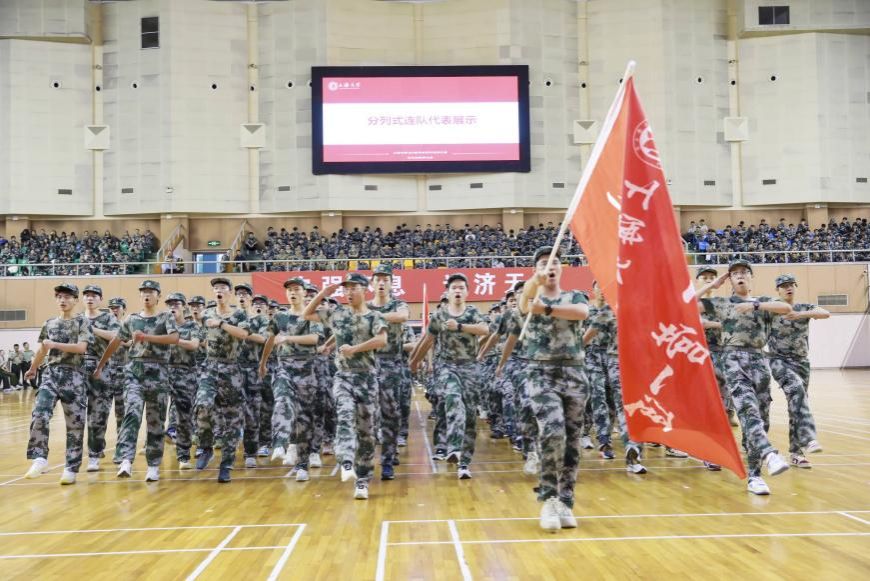 分列式连队代表进场展示,昂首阔步、踏地有声。一身身迷彩展现飒爽英气,一声声口号尽显蓬勃青春。他们用整齐划一的步伐和坚定如炬的目光,写就自信的答卷。