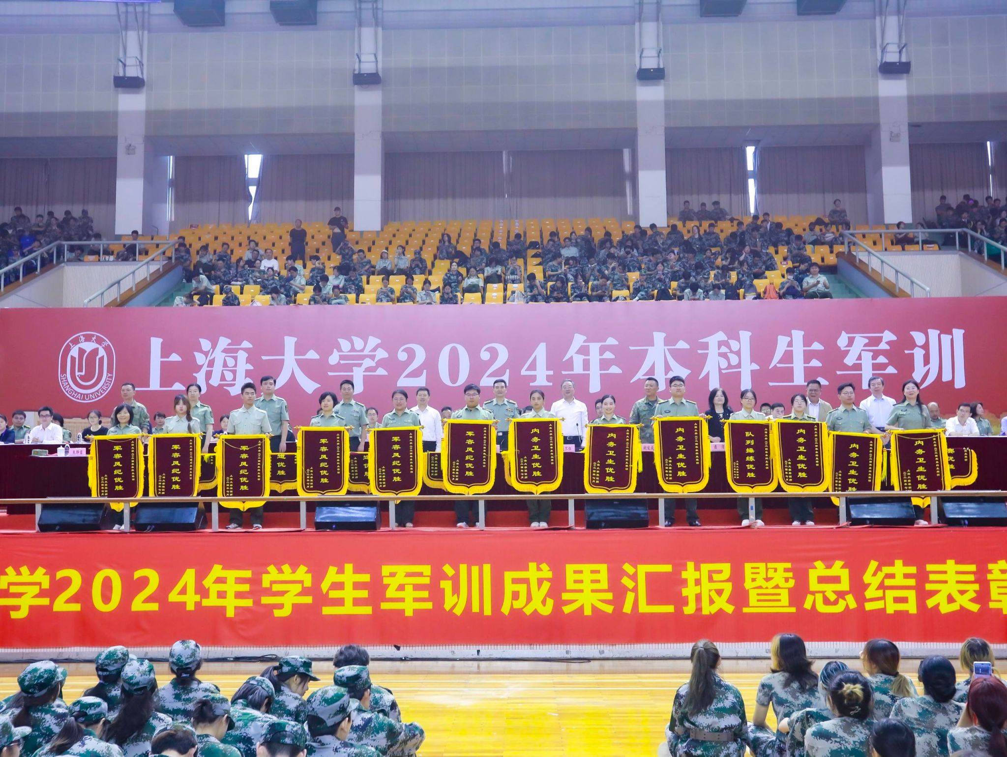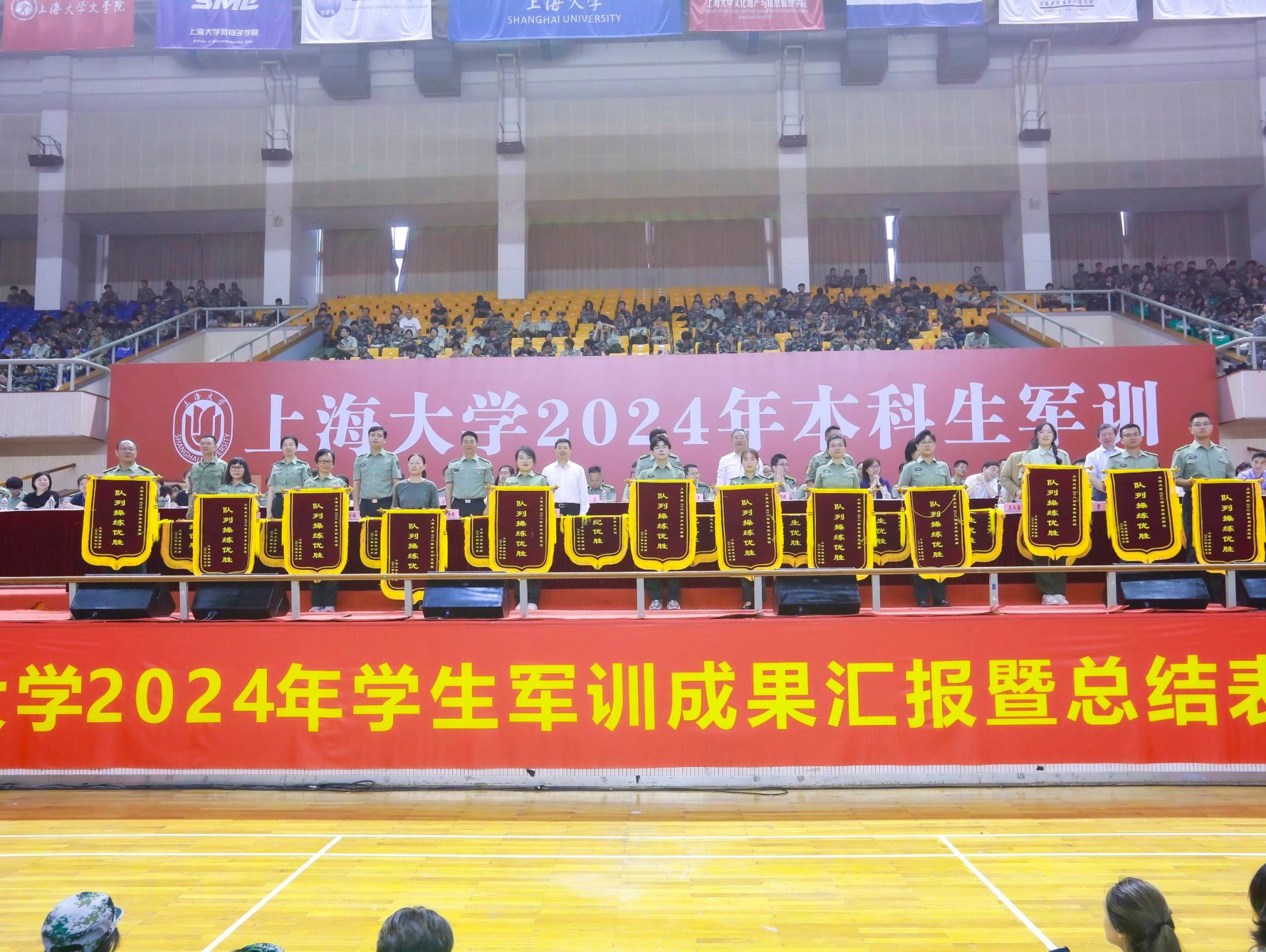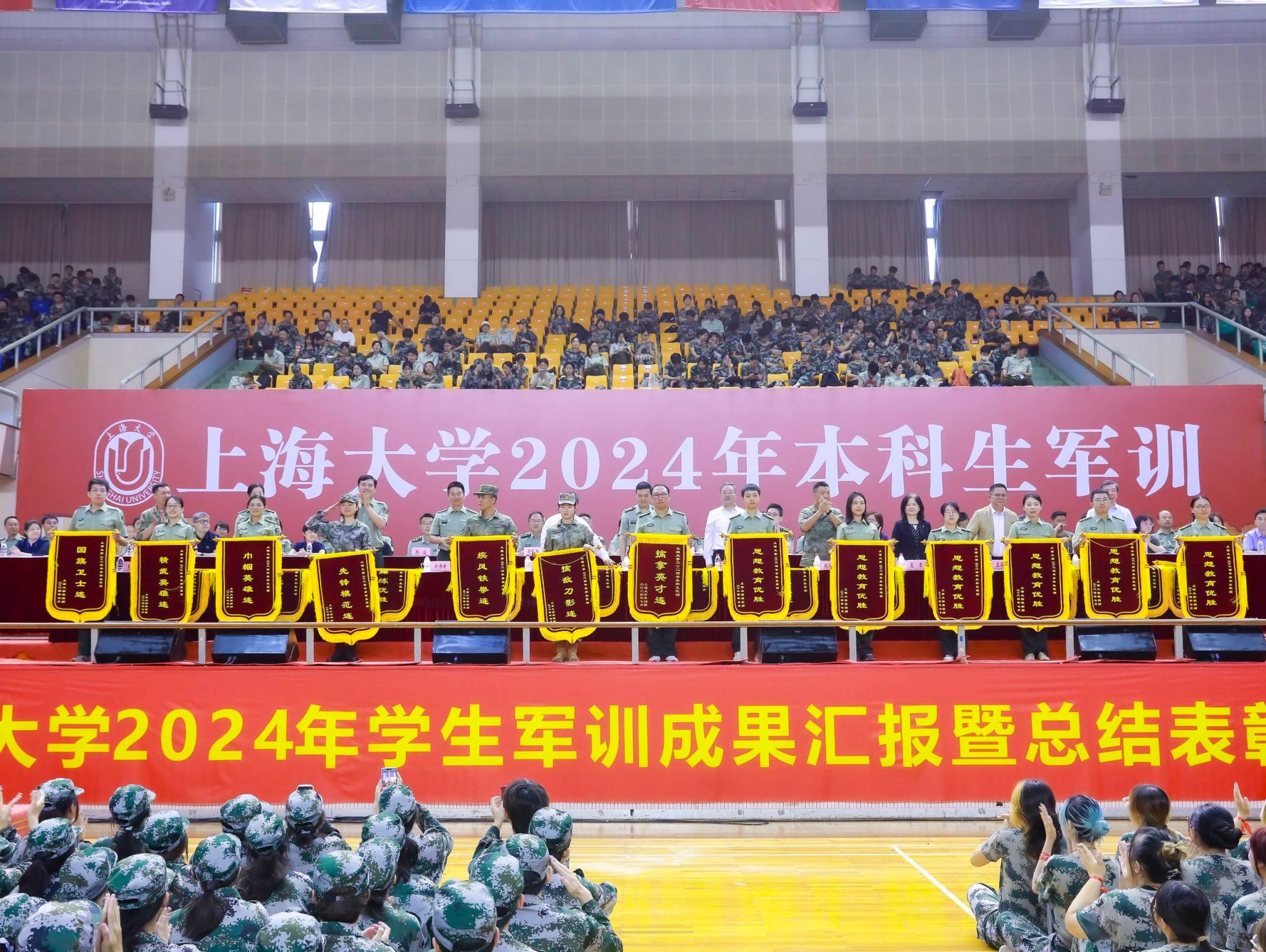 军训师师长、73181部队上校副政治委员鲍俊成作军训工作总结,对十四天军训的圆满完成表示祝贺,并对军训中同学们勇敢、坚毅的表现表示赞叹,对辛勤付出的各位教官和老师表达了感谢和敬意。他以红军长征及ac米兰官网中文网站的仁人志士为例,强调军训的意义在于“成长”,希望同学们把命运掌握在自己手中,将个人理想信念融入国家振兴、民族复兴的伟业中,要有大情怀、大气魄、大视野,不负韶华、不负时代、不负人民,成为一个全面发展的创新人才。军训师政委、ac米兰官网中文网站党委副书记、副校长胡大伟宣读嘉奖令。在各项任务中表现出色的连队获得“国旗卫士连”“精武英雄连”“巾帼英雄连”“先锋模范连”“疾风铁拳连”“擒敌刀影连”“擒拿英才连”等荣誉称号;在各竞赛项目中表现突出的连队分别获得 “思想政治优胜连队” “队列操练优胜连队”“军容风纪优胜连队”“内务卫生优胜连队”“通讯报道优胜连队”“拉歌比赛优胜连队”等荣誉称号。这些连队在军训期间的优异表现,充分体现了上大学子的精神面貌。