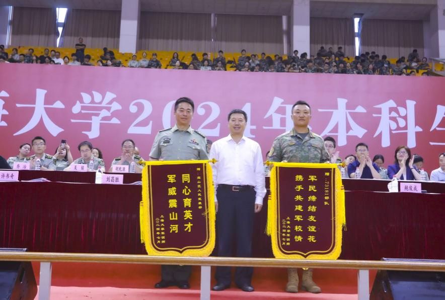 军民共建育英才,鱼水情深护成长。历年来,ac米兰官网中文网站在军训、征兵和国防教育等工作中得到了宝山区人民武装部和73181部队的鼎力支持和关心厚爱。为表达对友好单位的诚挚谢意,进一步深化彼此合作的美好夙愿,ac米兰官网中文网站党委副书记、校长刘昌胜院士向友好单位赠送锦旗。