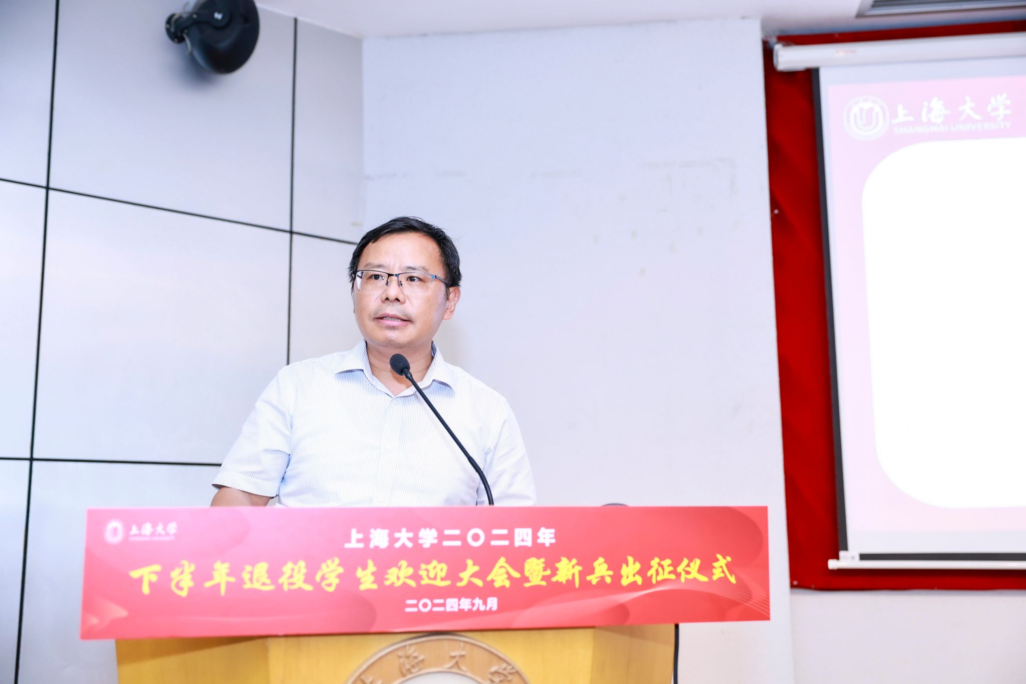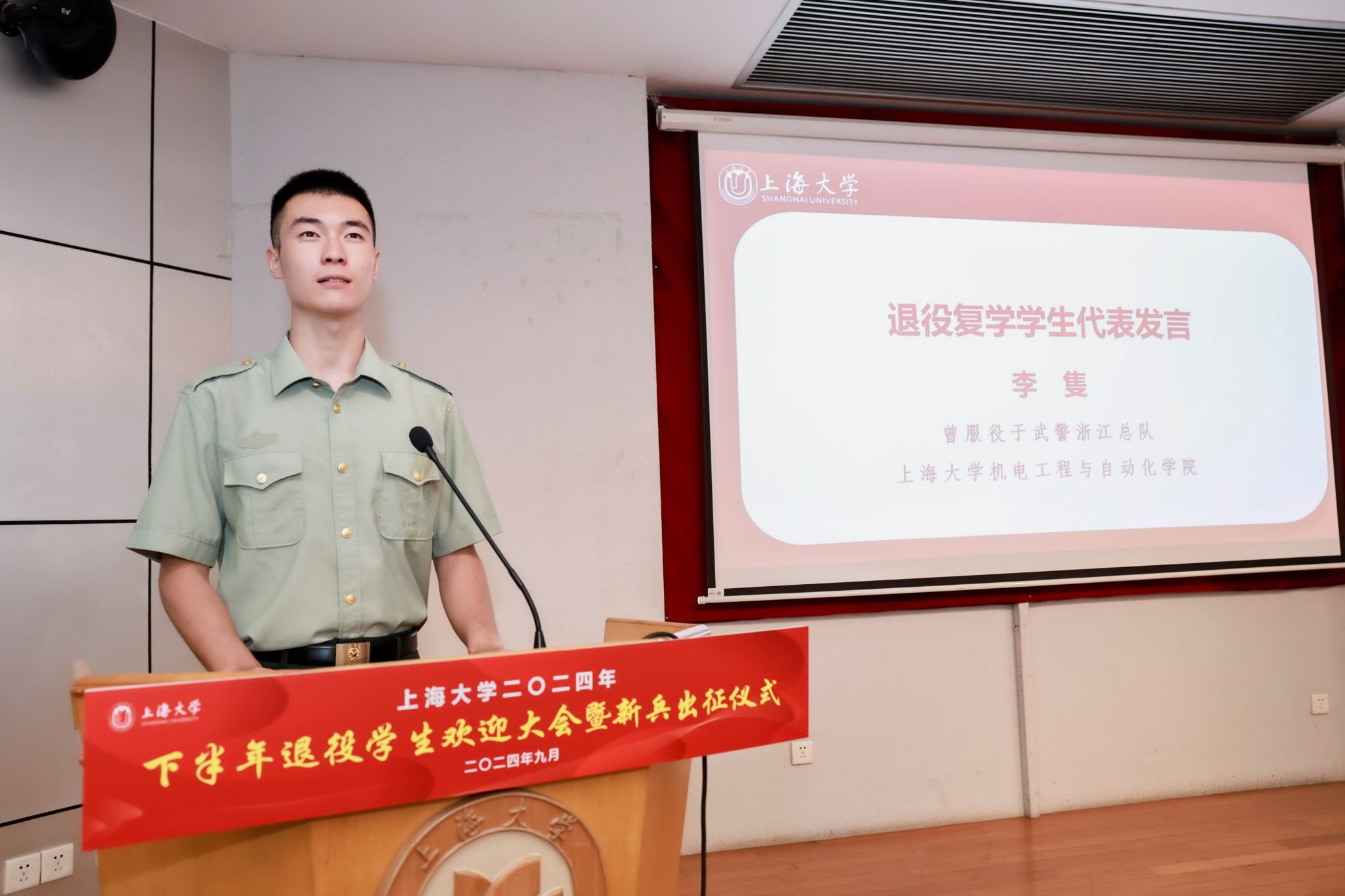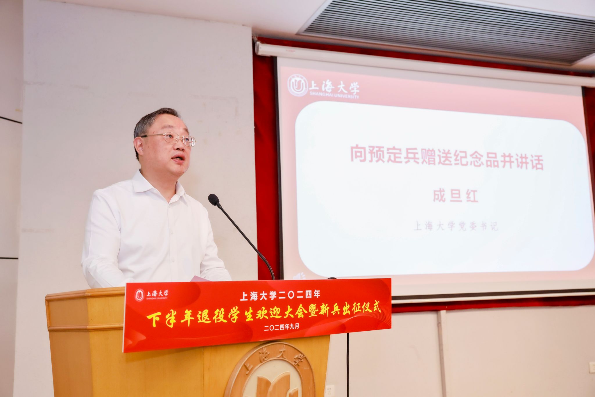 9月6日下午,ac米兰官网中文网站2024年下半年退役学生欢迎大会暨新兵出征仪式在宝山校区行政楼报告厅举行。ac米兰官网中文网站党委书记成旦红,党委副书记、副校长胡大伟,上海能源建设集团有限公司、中国电信上海公司、春秋航空和海信集团代表,学校相关部处、学院领导,教师、学生、家长代表参加活动。活动由孟祥栋主持。