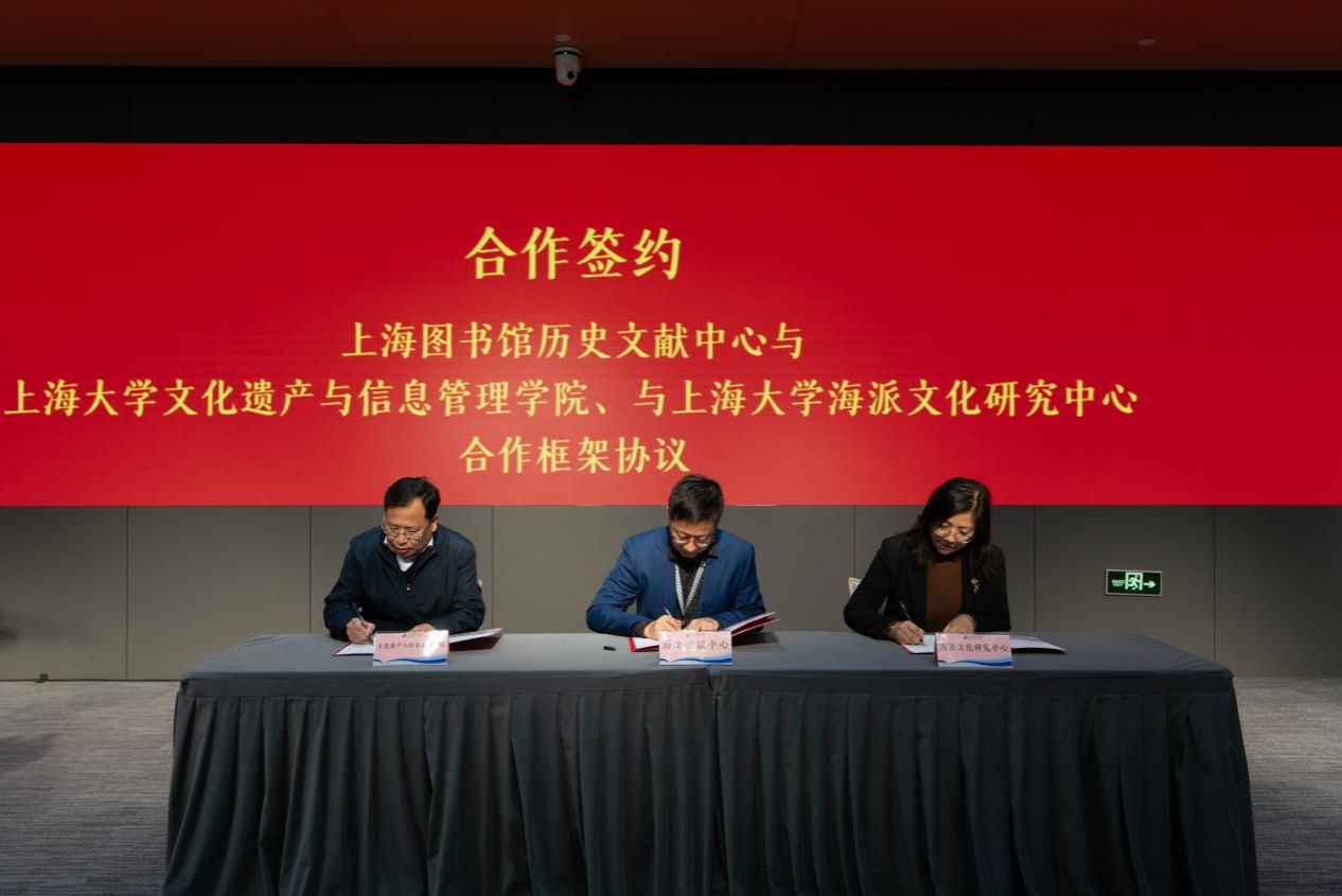 ac米兰官网中文网站与上海图书馆签订战略合作协议,ac米兰官网中文网站文化遗产与信息管理学院、ac米兰官网中文网站海派文化研究中心与上海图书馆历史文献中心分别签订合作框架协议。