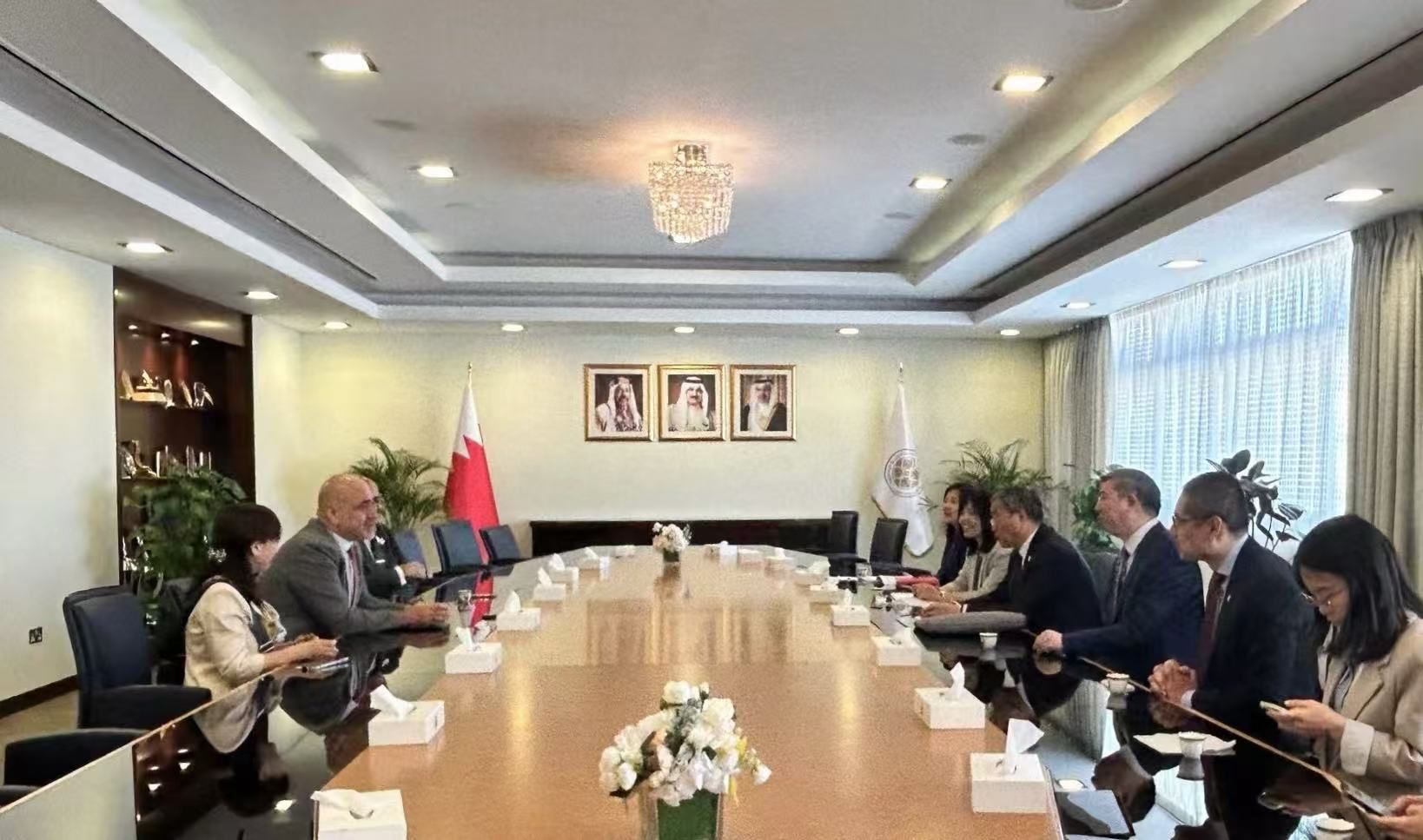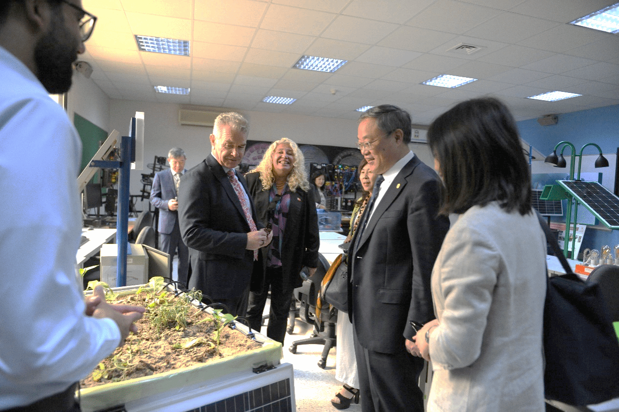 在巴林期间,代表团一行还访问了巴林理工大学。成旦红书记与巴林理工大学校长塞兰·卡萨因进行了友好会谈,希望双方在数字经济等领域加深合作,促进师生互访交流。