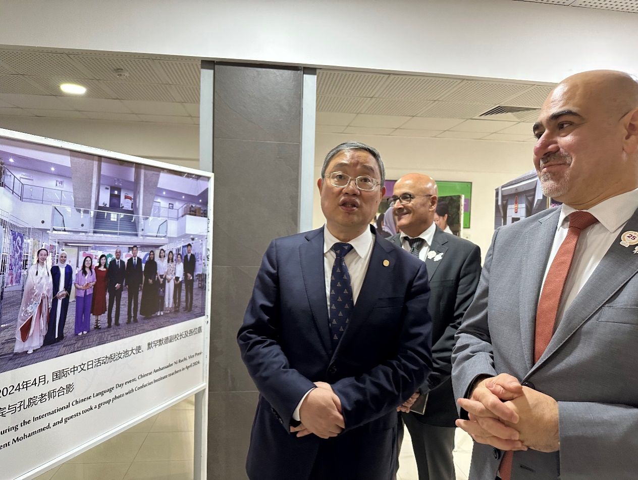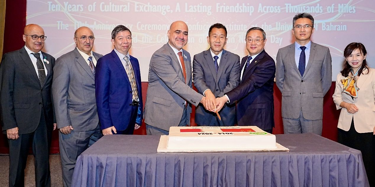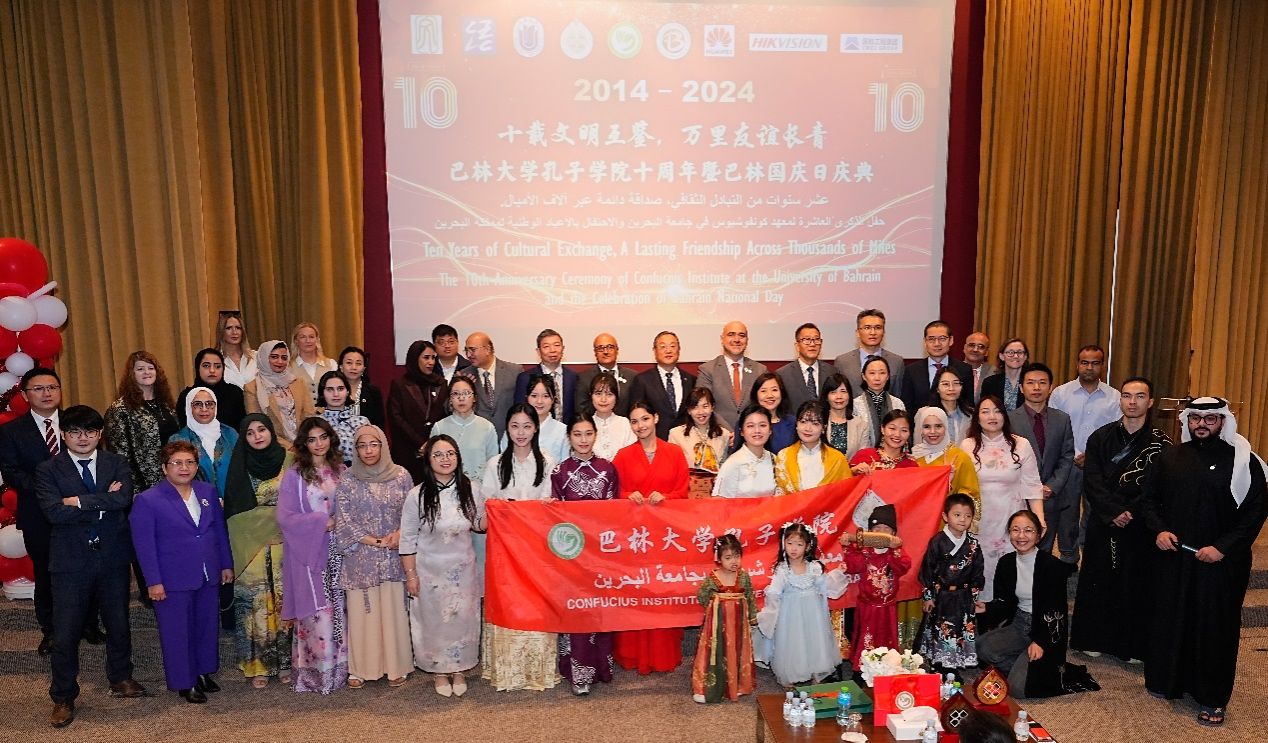 随后在福阿德校长的陪同下,成旦红书记和代表团一行参观了巴林大学孔子学院十周年发展图片展,出席了巴林大学孔子学院十周年庆典和巴林大学孔子学院举办的“2024首届阿拉伯地区汉语教育研讨会”。