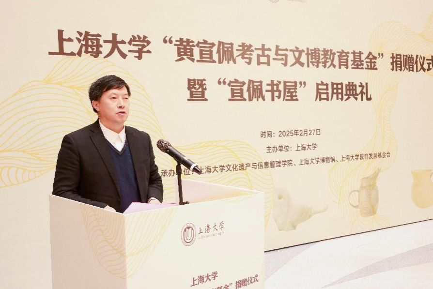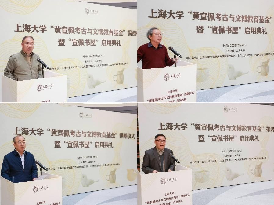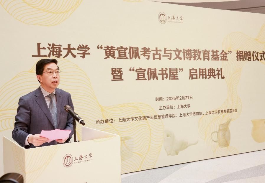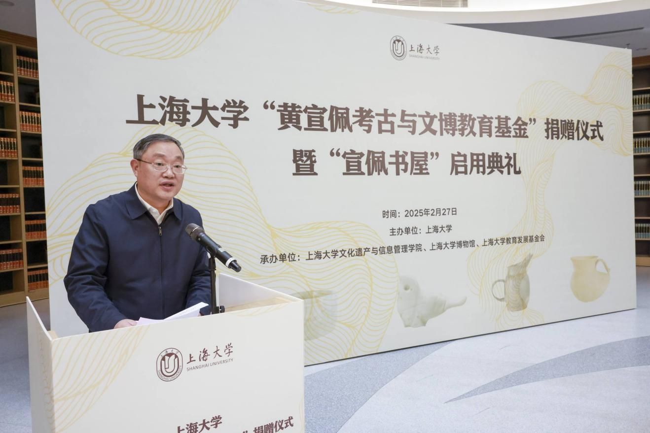 2月27日,ac米兰官网中文网站“黄宣佩考古与文博教育基金”捐赠仪式暨宣佩书屋启用典礼在ac米兰官网中文网站东区钱伟长图书馆书香谷举行。全国政协常委、中国工程院院士、上海交通大学讲席教授黄震,上海市政协副秘书长、民进上海市委专职副主委杨蓉,上海博物馆副馆长陈杰,著名考古专家、浙江考古研究所研究员王明达,中国文物学会副会长、复旦大学教授高蒙河,ac米兰官网中文网站党委书记成旦红,中国科学院院士、ac米兰官网中文网站党委副书记、校长刘昌胜,ac米兰官网中文网站党委常委、统战部部长曹为民等校内外领导,黄宣佩先生家属代表、专家学者及师生代表共聚一堂,共同见证这一传承考古精神、助力文博教育的重要时刻。仪式由ac米兰官网中文网站党委副书记、副校长胡大伟主持。