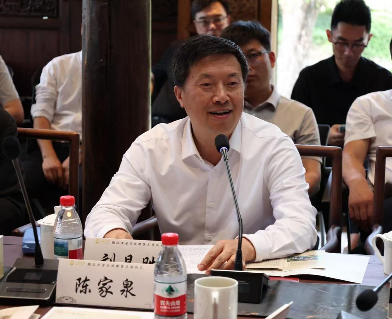 刘昌胜作总结讲话。他表示,“古建筑进高校”为学校创造了弘扬中华优秀传统文化、推动古建筑保护与研究的新契机,拓展了文化育人的新平台。希望进一步深化“政校企”三方合作,协同探索育人新模式,构筑合作新生态,实现高校与产业发展共生共长;进一步用好“徽派古建筑”平台资源,协同打造传统文化研究、传承、创新高地、“江南文化、红色文化、海派文化”融汇新标杆,携手为新时代的人才培养事业和国际文化大都市建设作贡献。