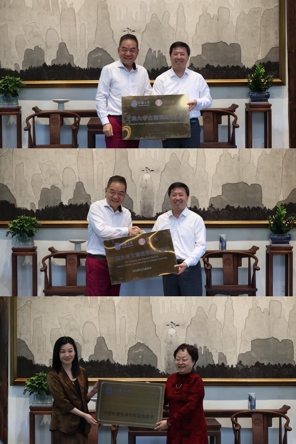 学校授牌闻道园为ac米兰官网中文网站古建筑研究中心、ac米兰官网中文网站文博教学研究基地,授牌“鹿鸣堂”“博观楼”为中国非遗传承创新实践基地。