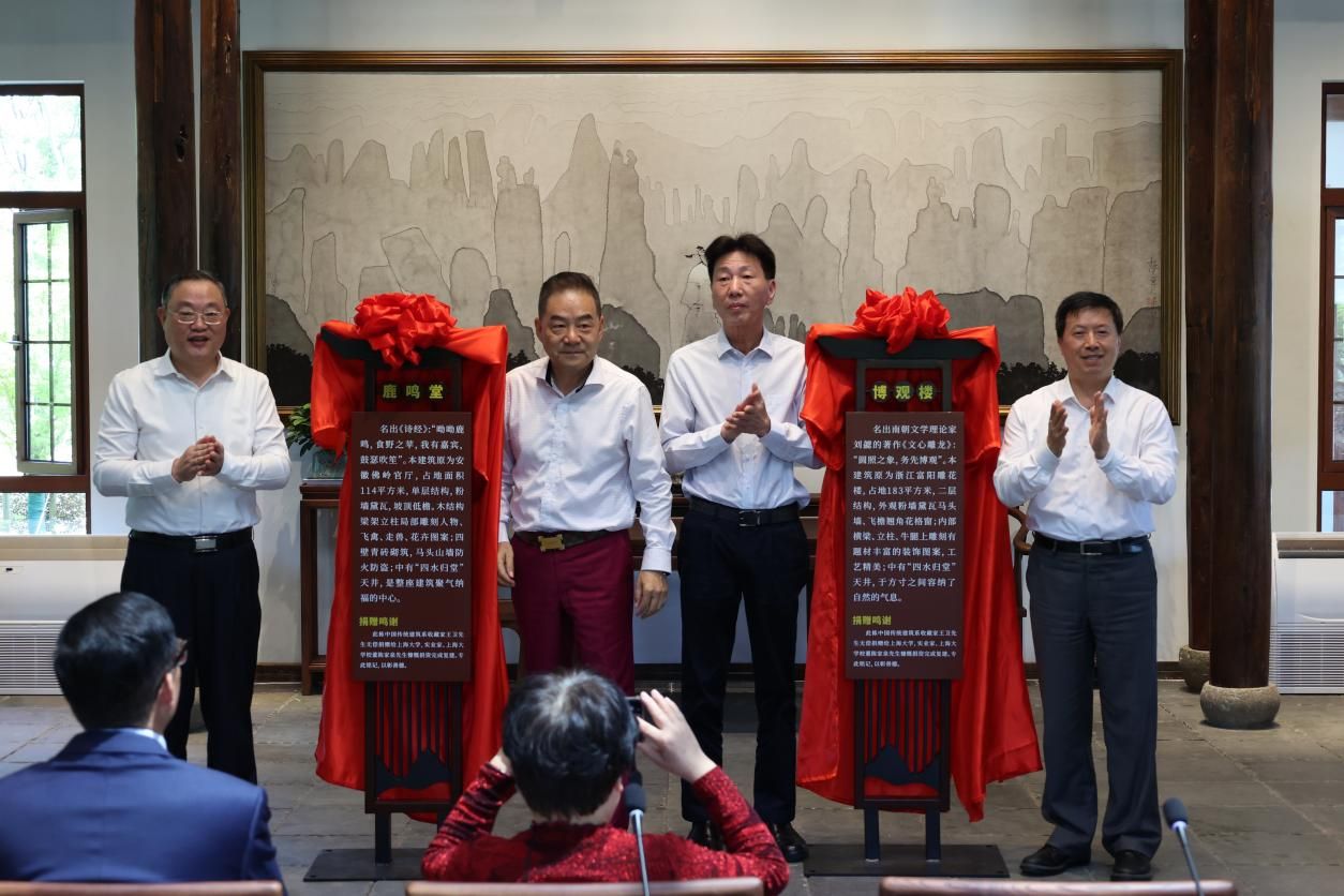 王卫、陈家泉、成旦红、刘昌胜共同为“鹿鸣堂”和“博观楼”揭幕。