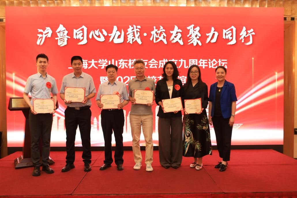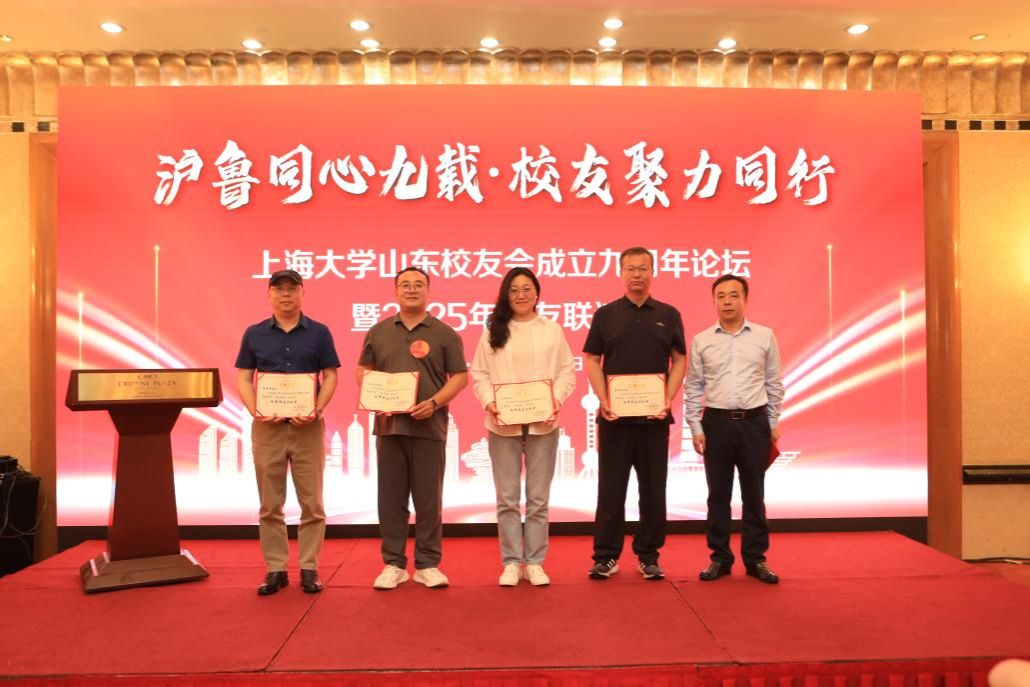 陆瑾、陈腾为获得ac米兰官网中文网站山东校友会2024年度“优秀校友贡献奖”的校友颁发获奖证书。