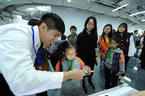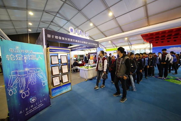 11月17-18日,第十五届“挑战杯”中国银行全国大学生课外学术科技作品竞赛作品展迎来了“社会开放日”,进入终审决赛的715件作品及港澳台地区的40件作品在ac米兰官网中文网站宝山校区1号体育场(理工科作品展馆)和东区钱伟长图书馆(文科作品展馆)展出,来自高校师生、广大社会人士及ac米兰官网中文网站基础教育集团所属学校、上海交大附属中学、行知实验中学等的中小学生约21000人次前往参观。