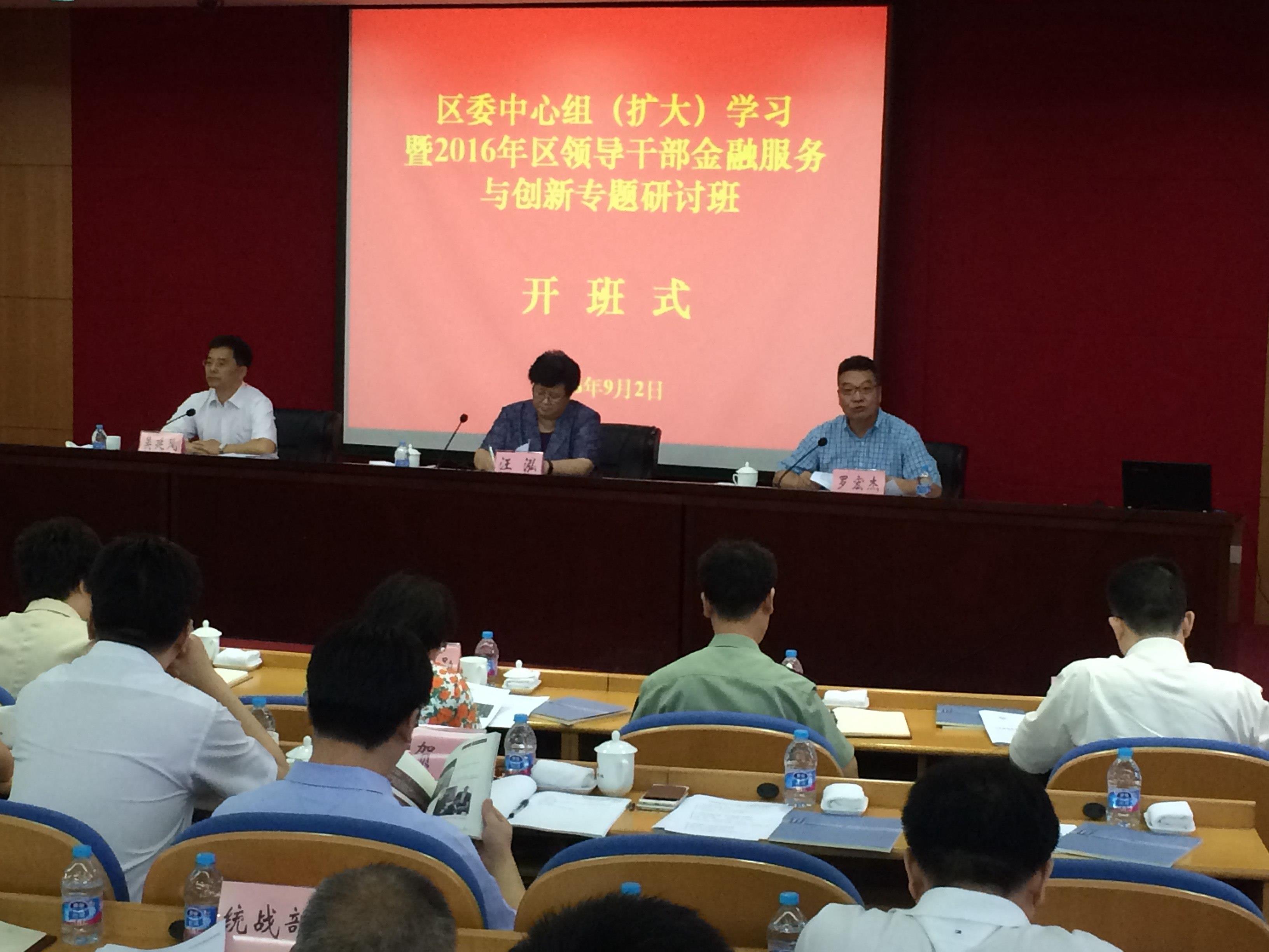 本次研讨班从9月2日至9月24日举行,分为六个模块,总计六天课程,来自宝山区委中心组成员、各级领导干部近200人参加此次金融创新专题学习。