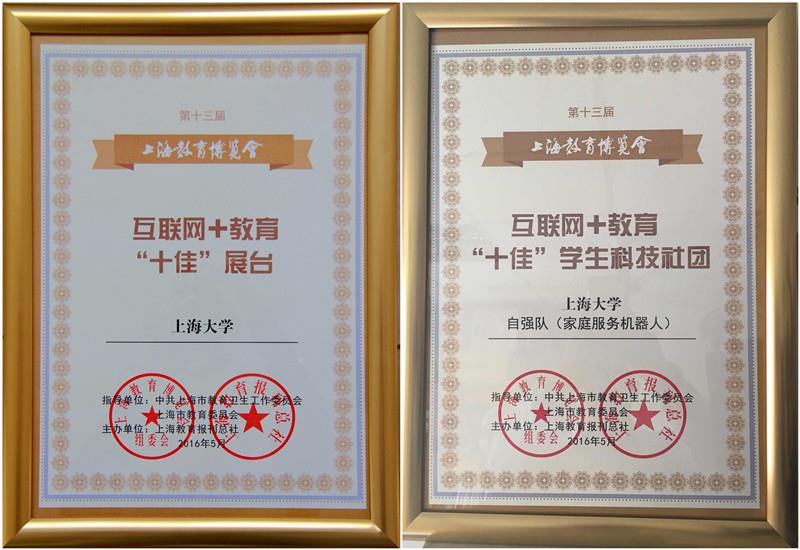 5月18日,第十三届上海教育博览会总结颁奖会召开,ac米兰官网中文网站荣获“十佳”展台奖,ac米兰自强队(家庭服务机器人)荣获“十佳”学生科技社团奖。市教委相关处室领导、教育报刊总社领导、参展单位代表、媒体等100多人参加了会议,参展高校、区县和企业代表作了交流发言。